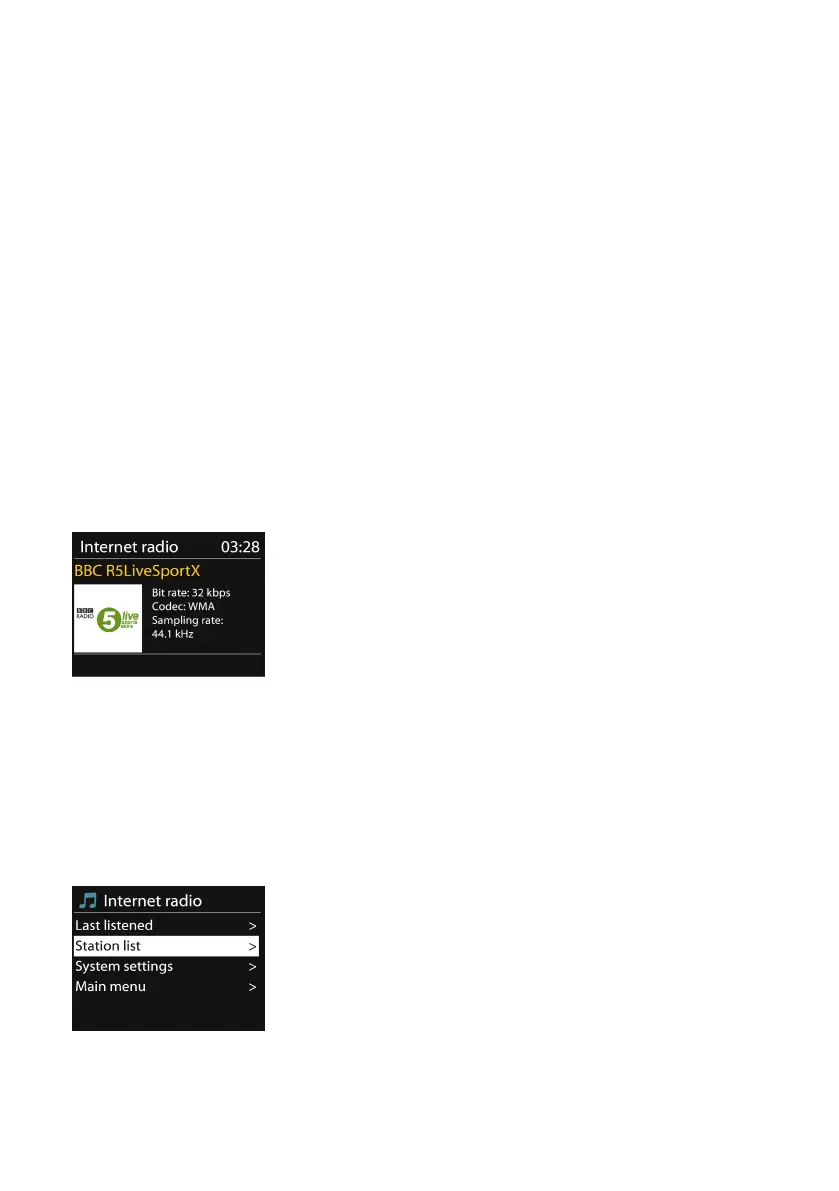 Alors que vous é coutez une station radio Internet, vous pouvez appuyer sur le