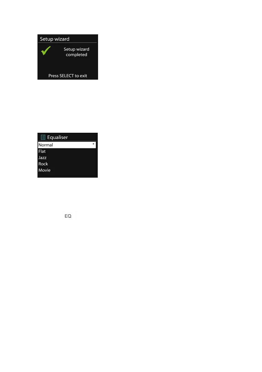 Allows you to select different equalizers: Normal, Flat, Jazz, Rock,