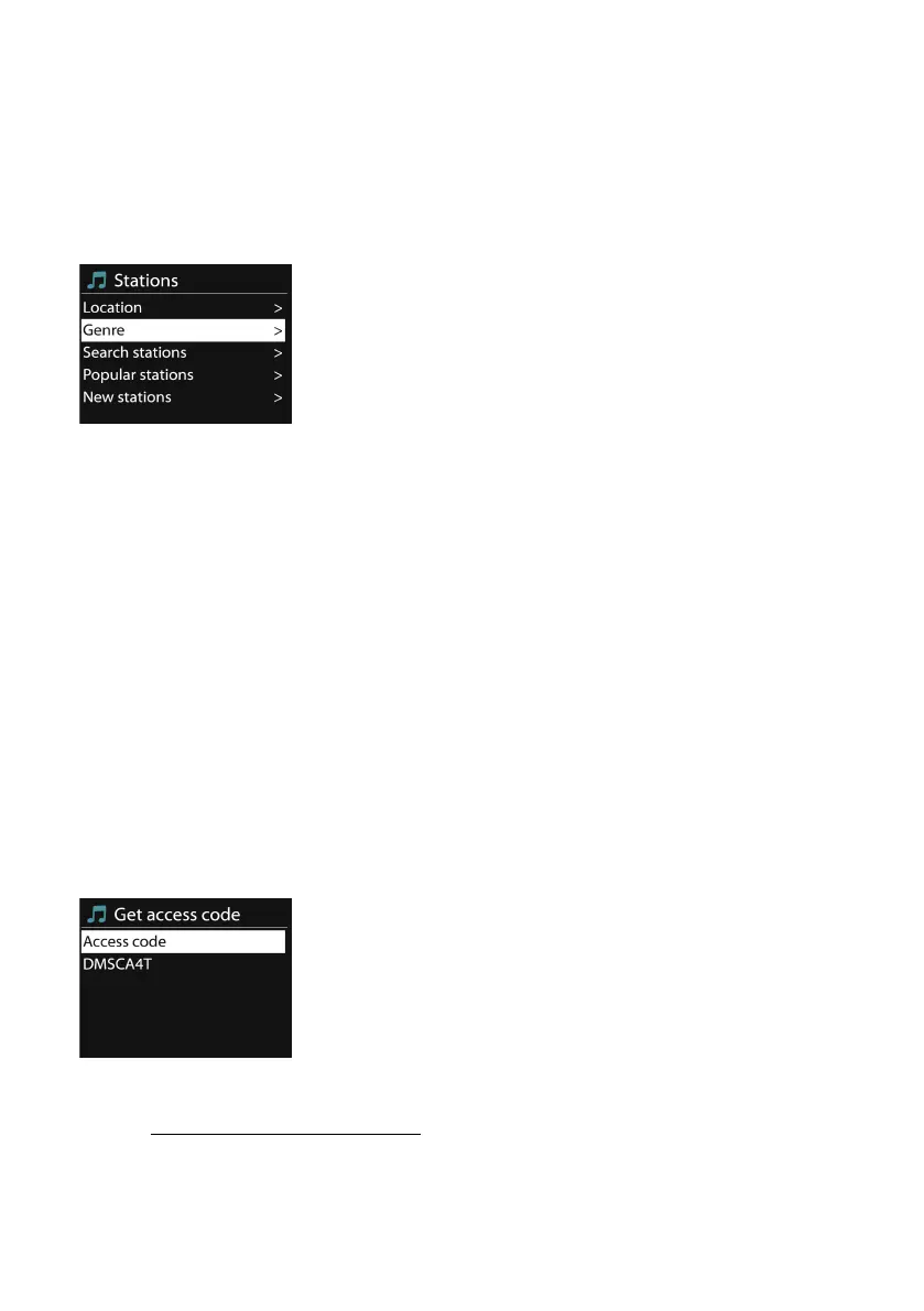 Para registrar el dispositivo, elija Station list (Lista de emisoras) > Help