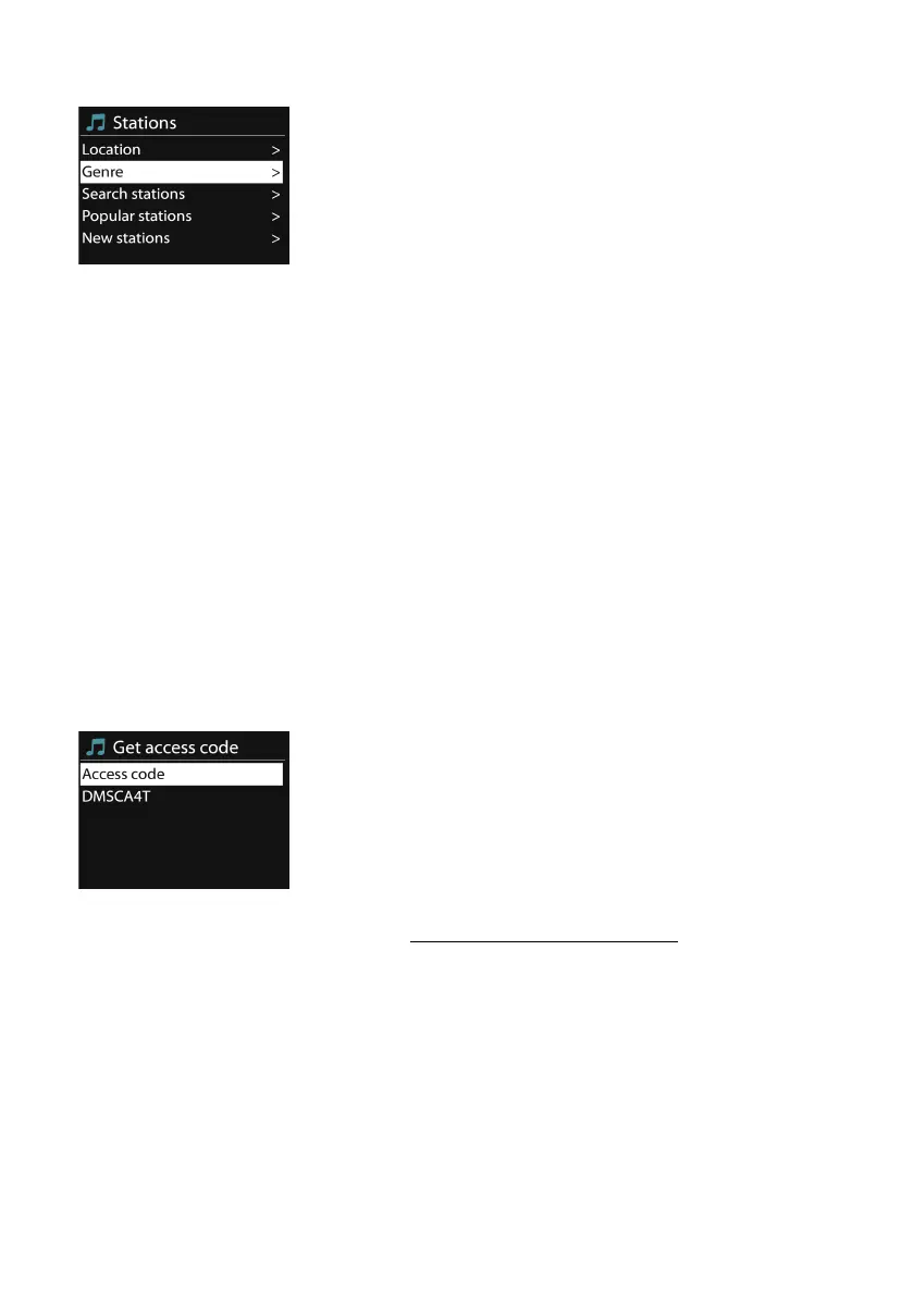 register your device, choose Station list > Help > Get access code to
