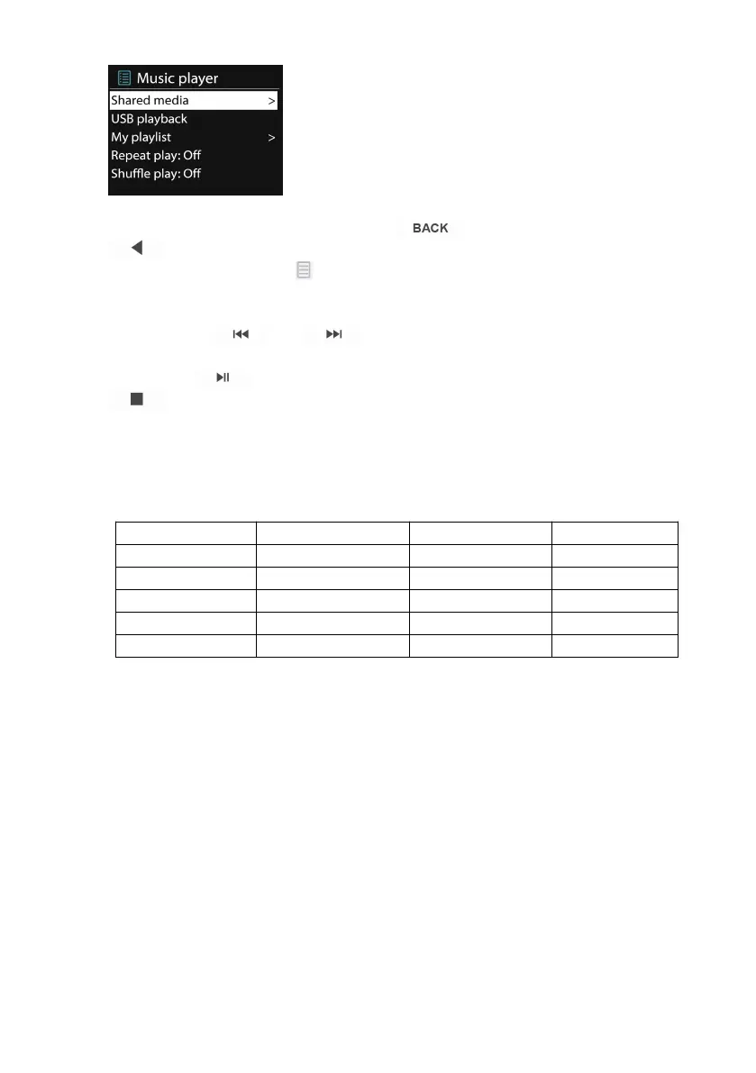 previous or next track, press and hold to rewind or fast forward (x1, x2,