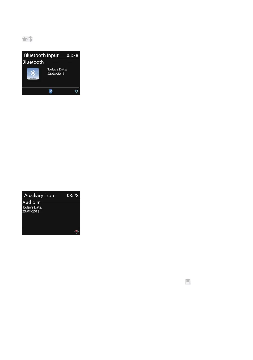 Aux in mode plays audio files from an external source such as an MP3 player.