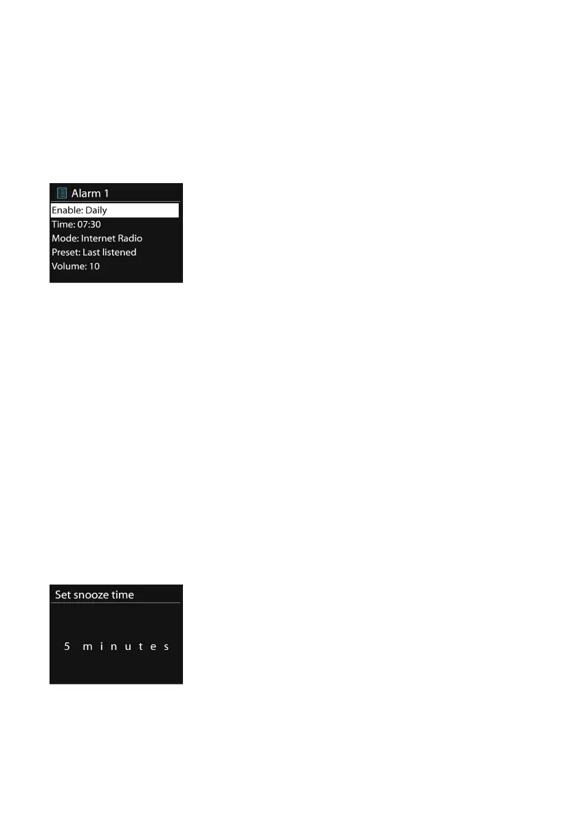 When the alarm sounds, press Menu/Info; Tuning +/-, back and OK button on