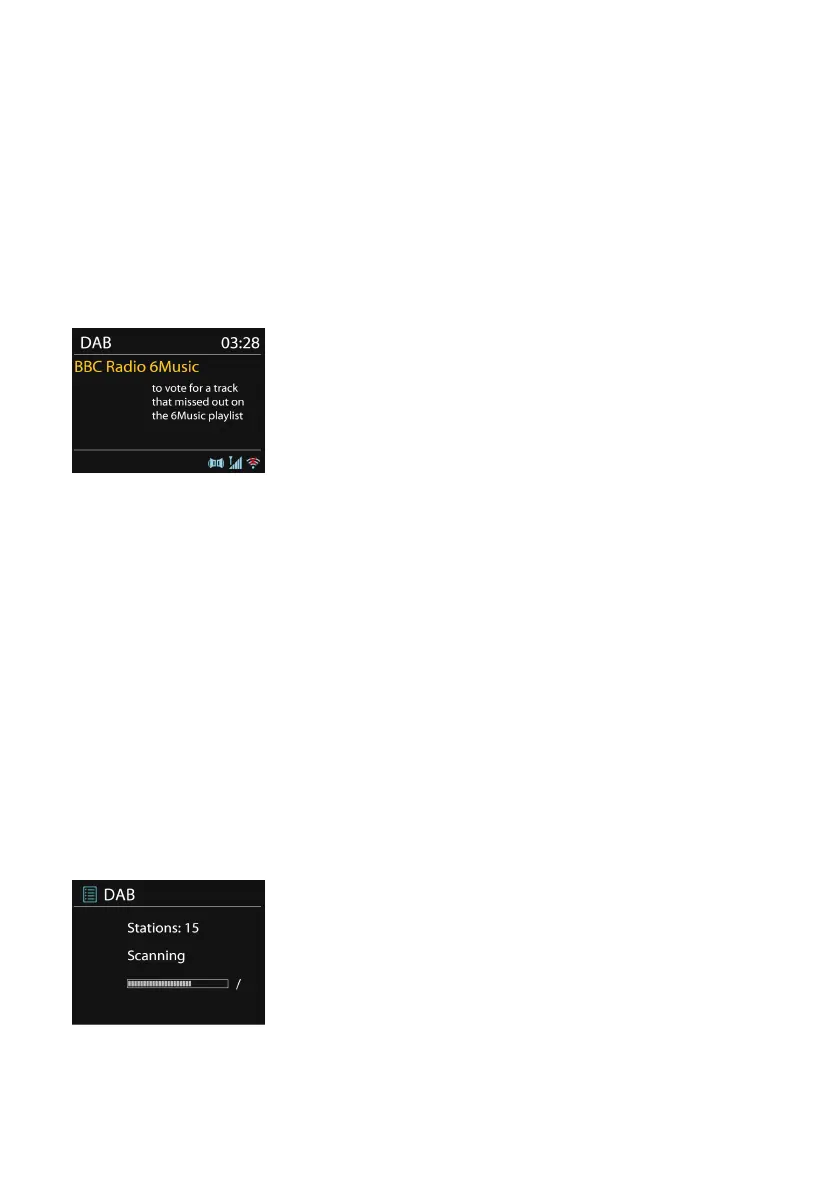 De eerste keer dat u de DAB-radio-modus selecteert, of als de
