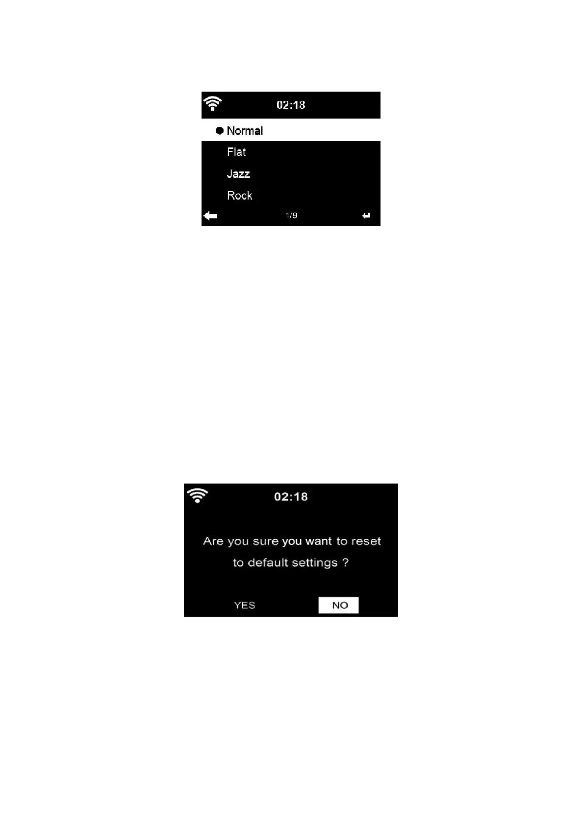 Les réglages possibles sont les suivants: Normal, Plat, Jazz, Rock, Bandes sonores, Classique,