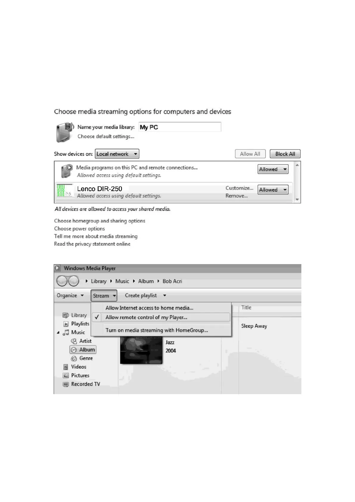 ● The PC system requirement for DLNA is Windows 7 and Windows Media Player 12. Setup as
