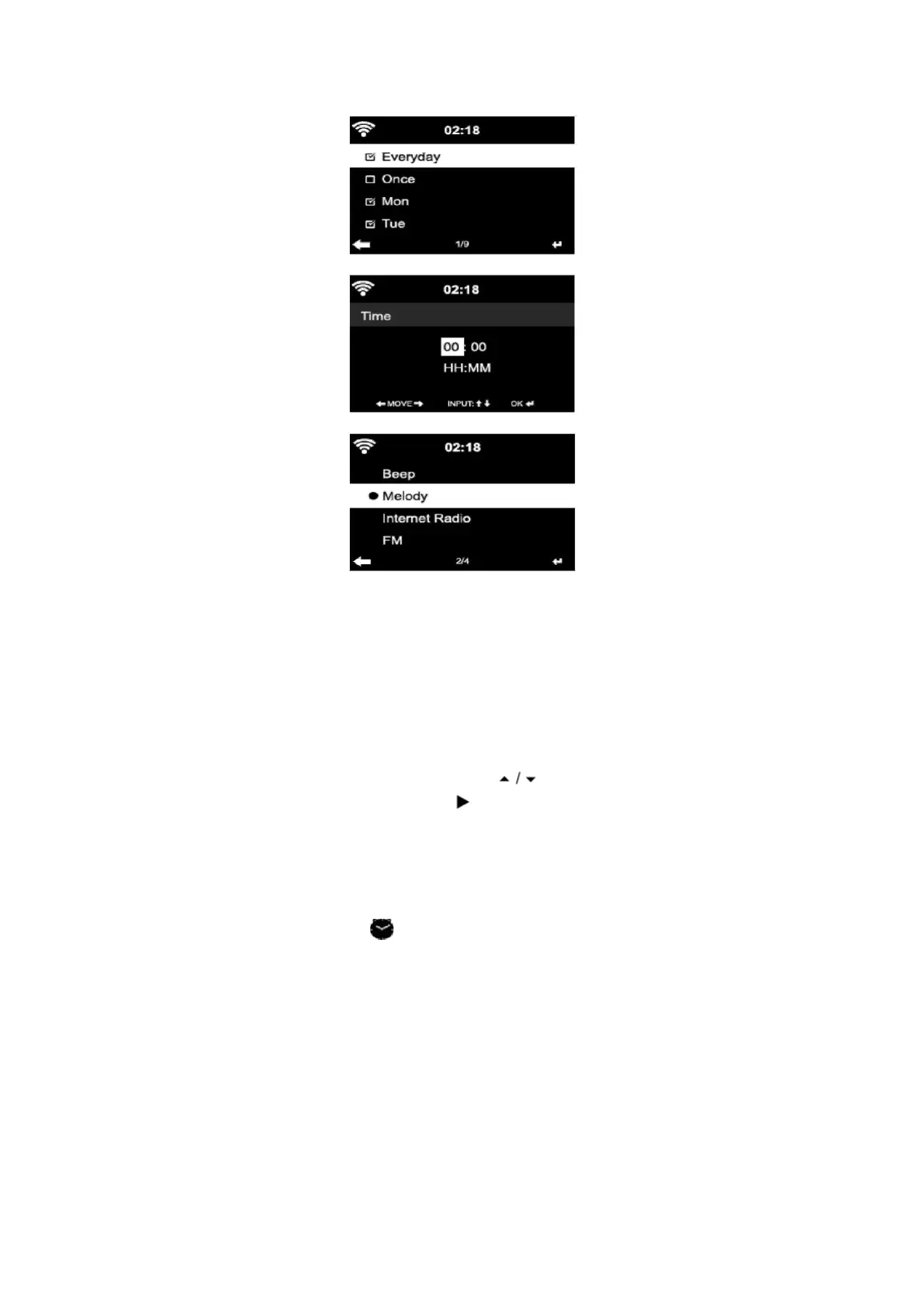 Nota: si la elegido el sonido (alarma) Internet Radio/FM/DAB. Tiene que seleccionar una
