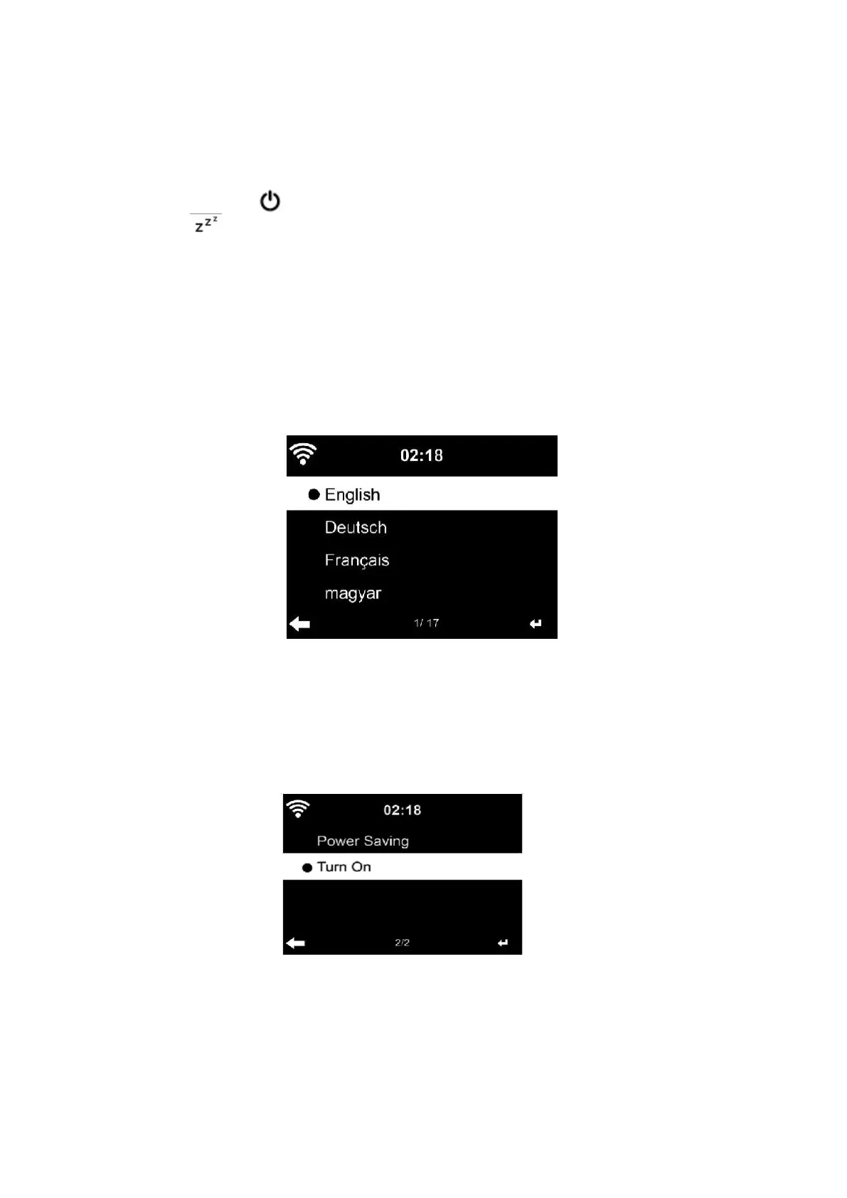 Select ”Power Saving” to set the backlight brightness for the standby mode and select “Turn