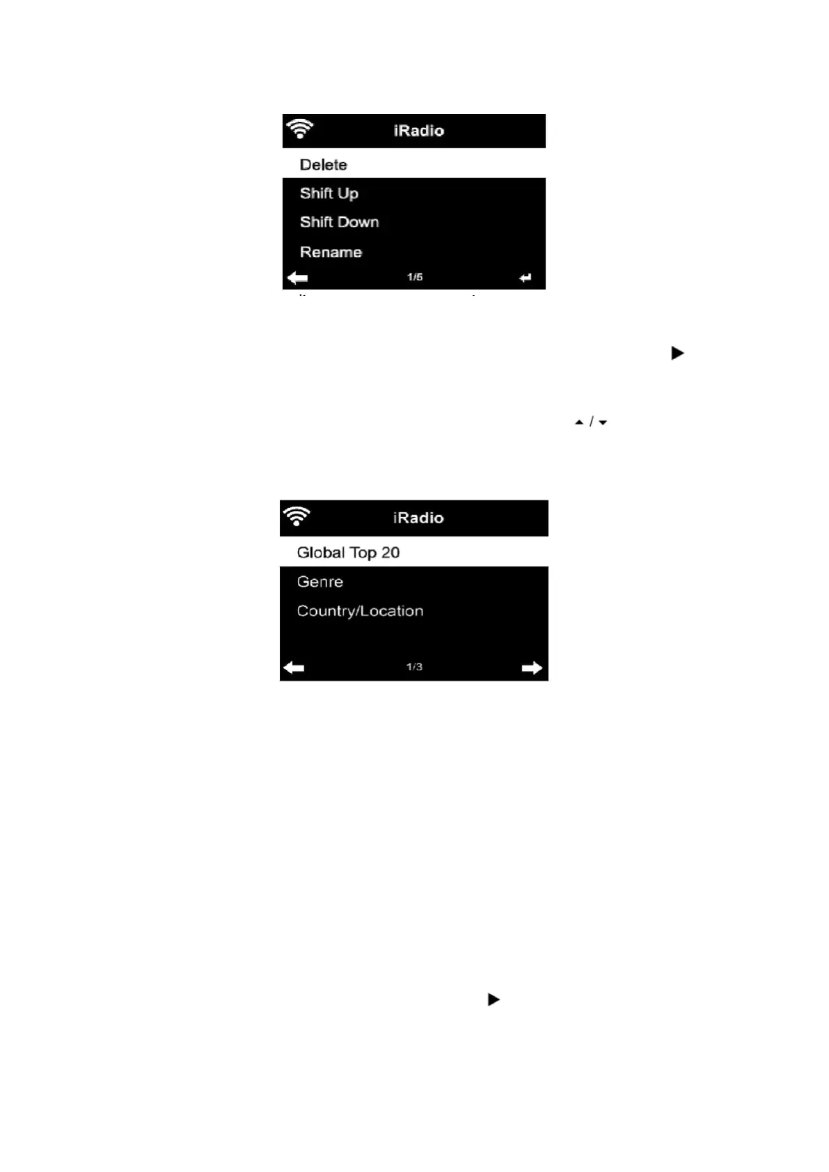 For each station, press OK to play directly. You may press Right to enter its submenu – you