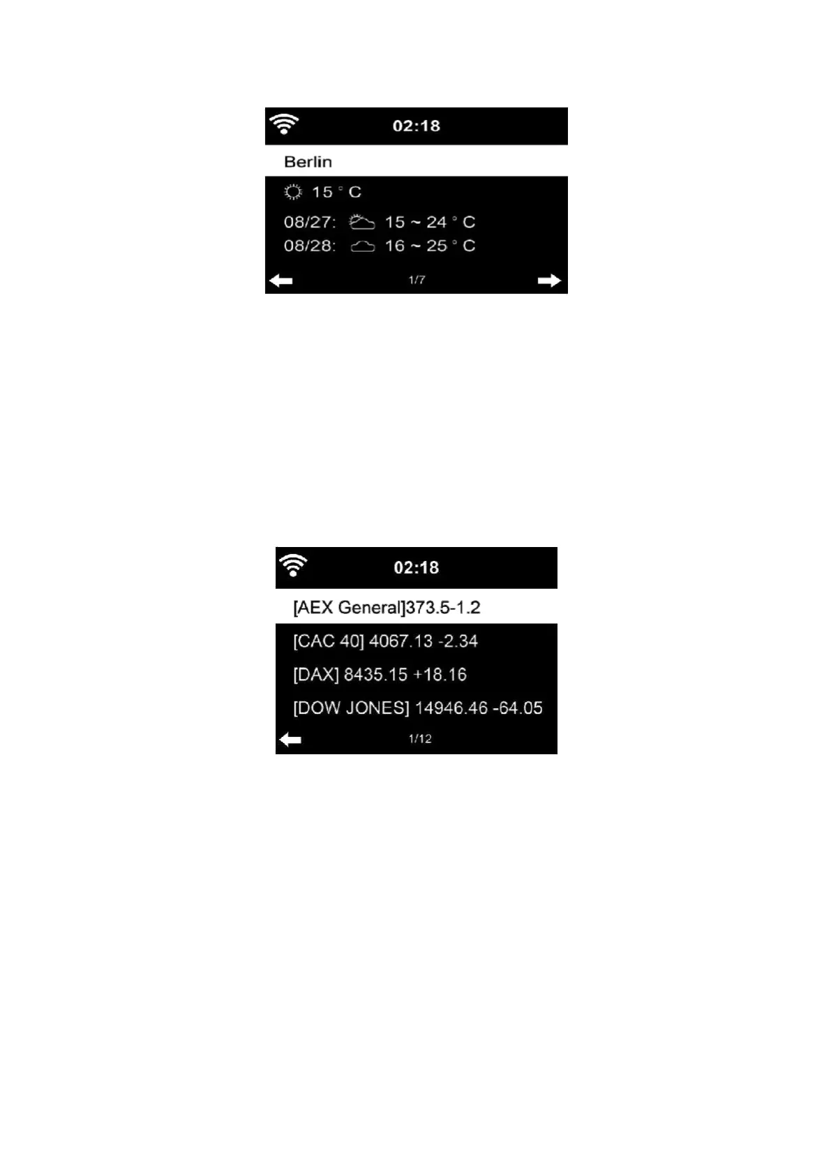 De DIR-250 kan de weersinformatie weergeven in de stand-bymodus.