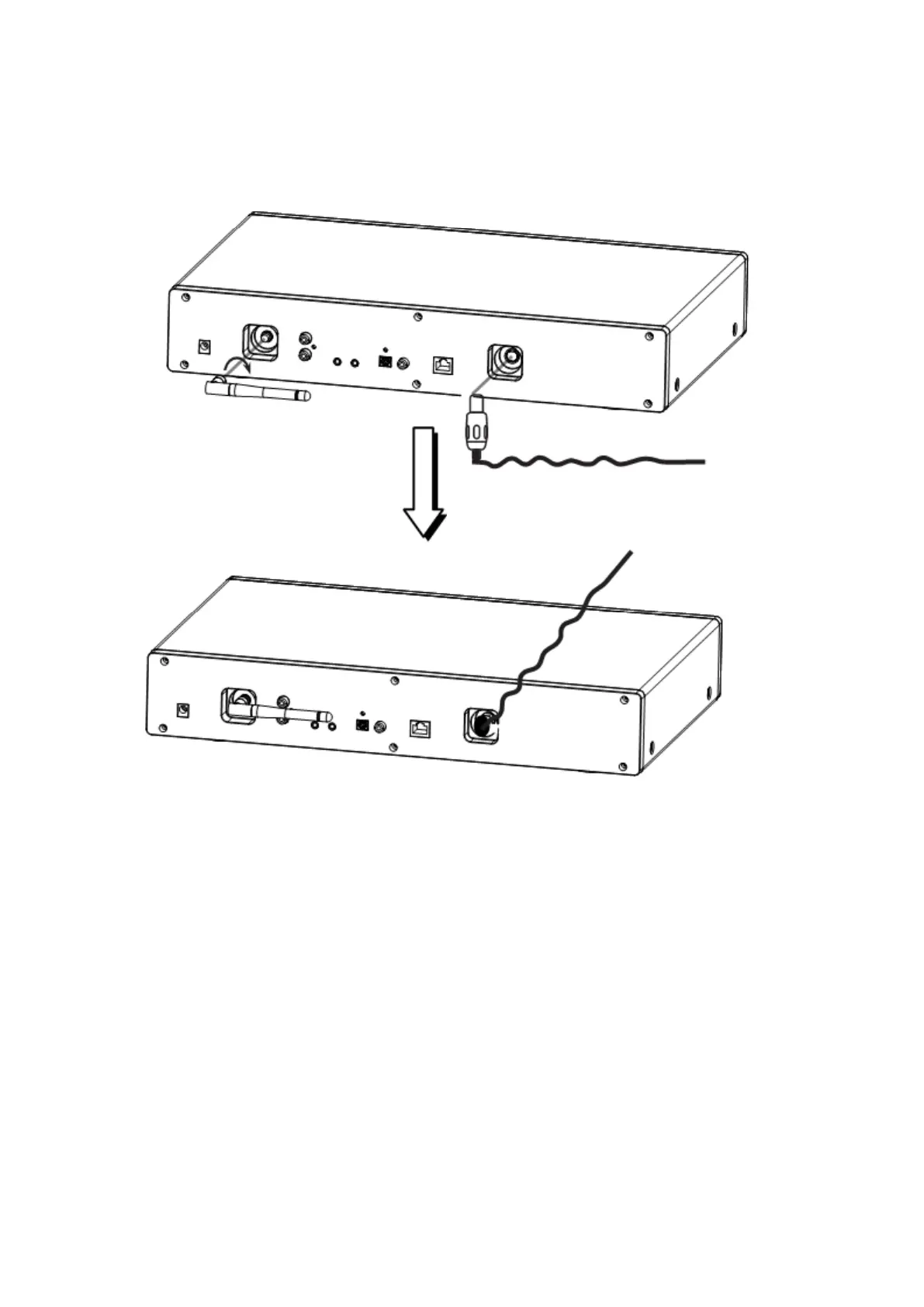 Stecken Sie die FM-Innenraumantenne wie abgebildet in die Antennenbuchse.