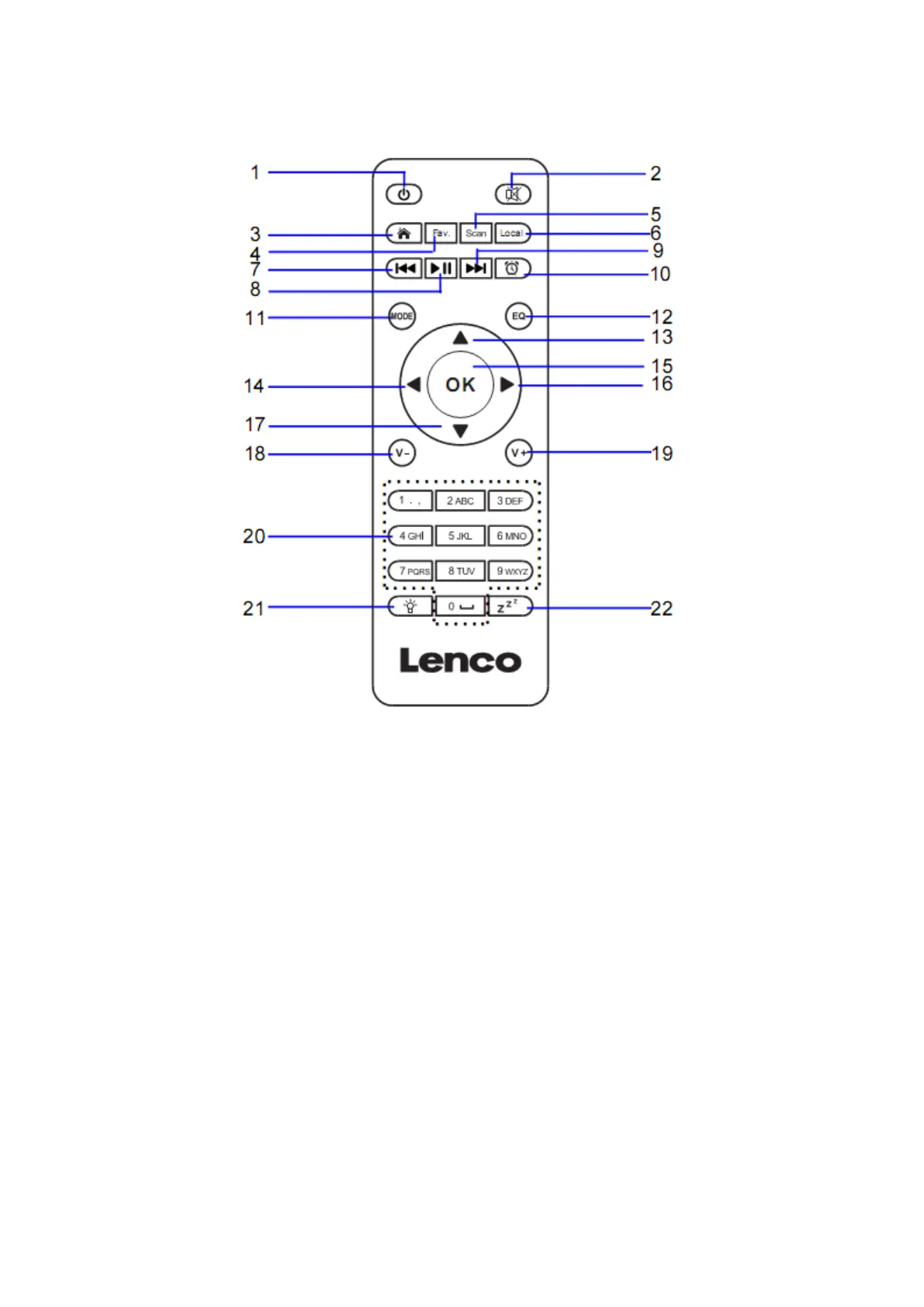 20. 0.....9 Sélectionner les favoris/Fav; saisie