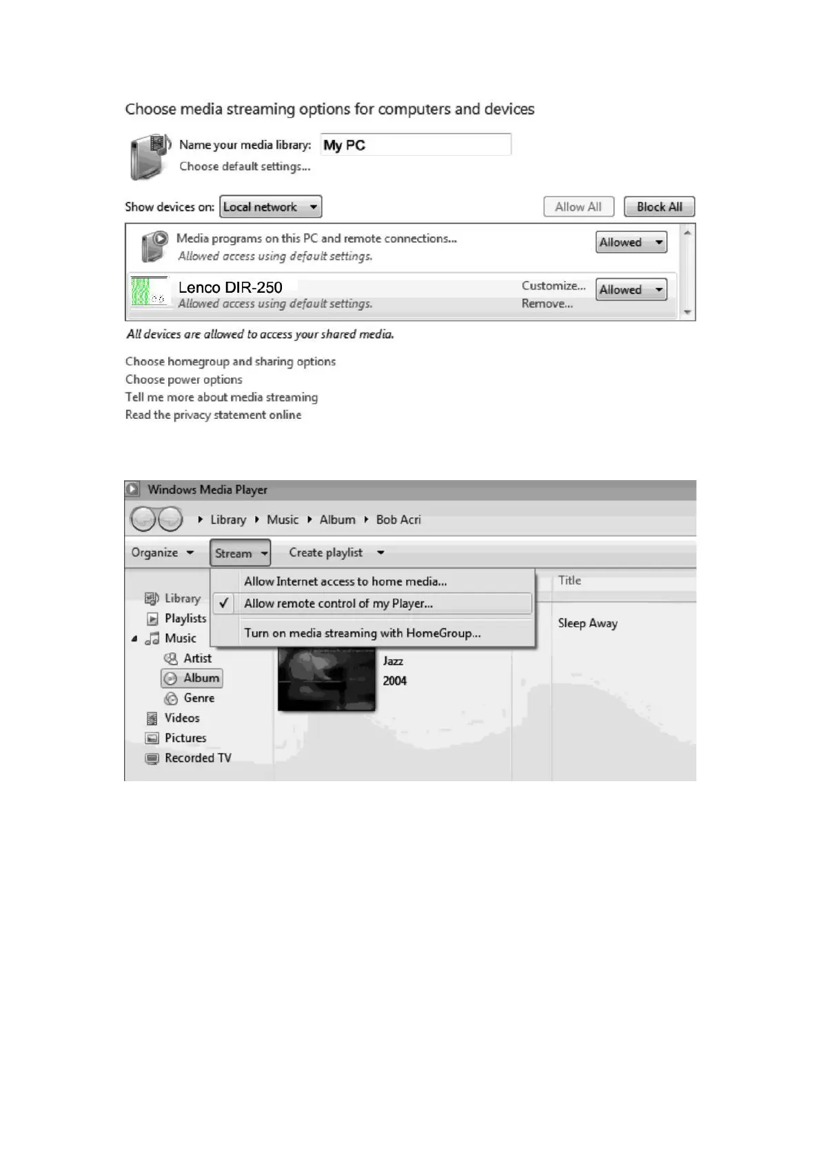 Ouvrez Windows Media Player pour activer « allow remote control of tried player »