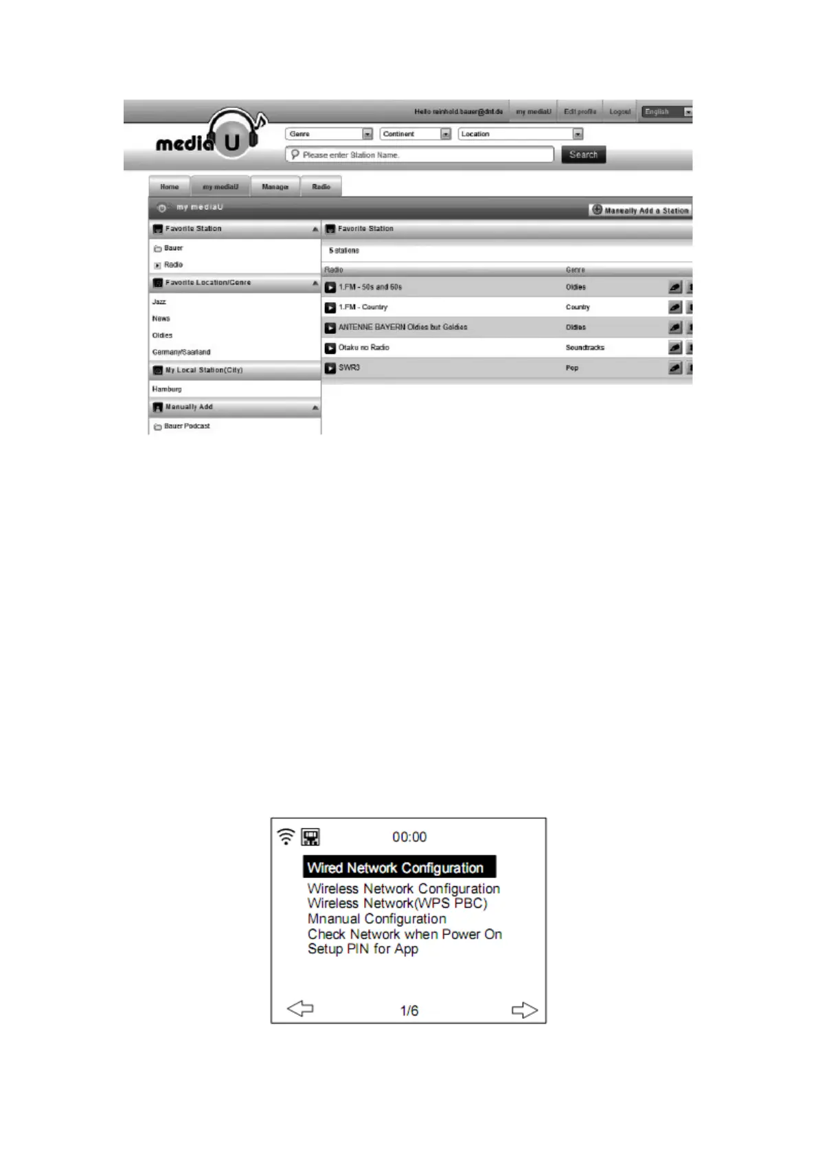 2. Sur la radio internet, allez dans Configuration> Manage my mediaU (Gérer my