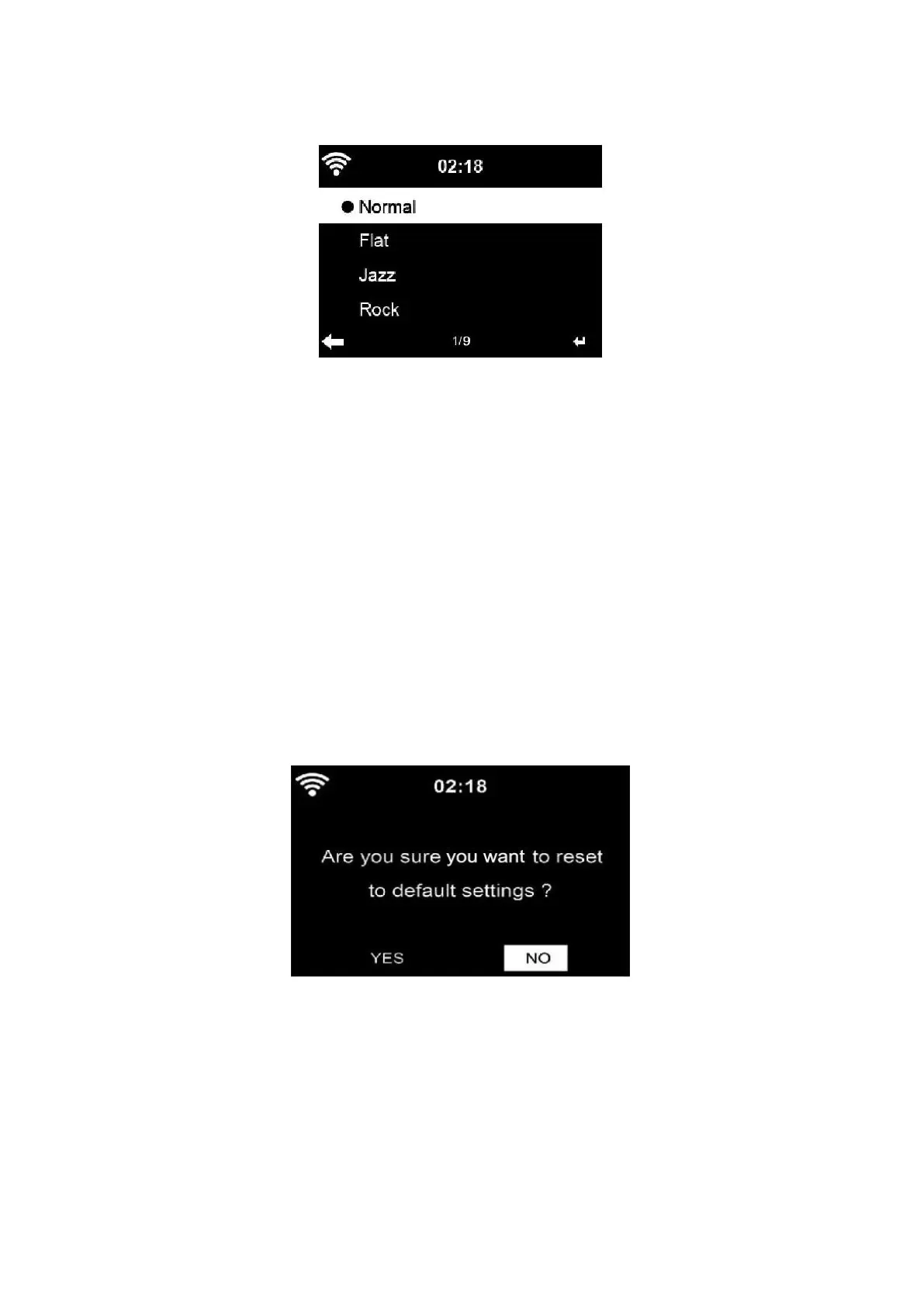 Les réglages possibles sont les suivants: Normal, Plat, Jazz, Rock, Bandes sonores, Classique,