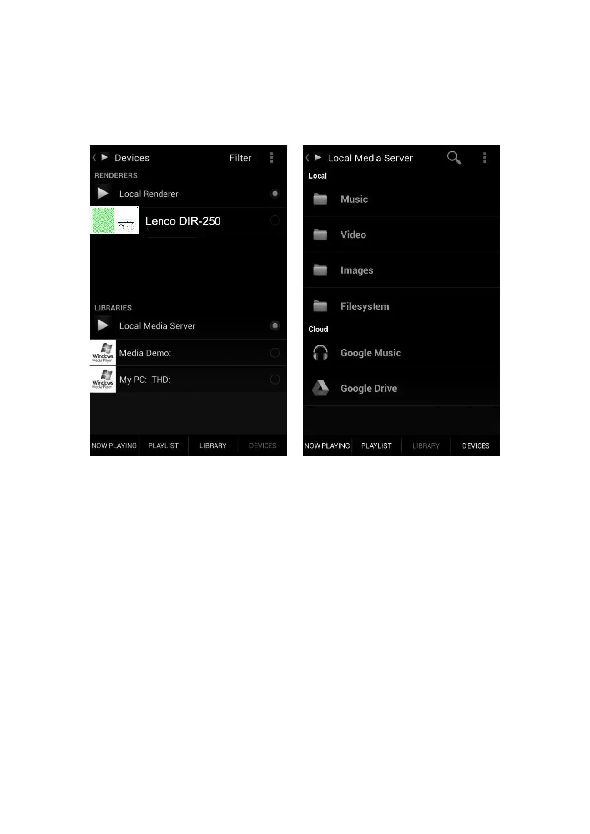 Seleccione Lenco DIR-250 como el reproductor. Algunas aplicaciones permiten reproducir la