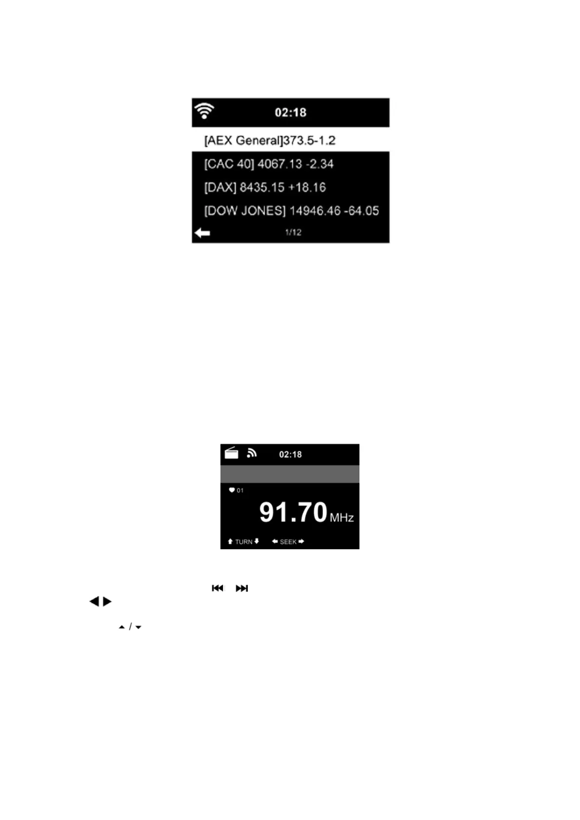 la lista de las emisoras guardadas; pulse el navegador en el mando a distancia para
