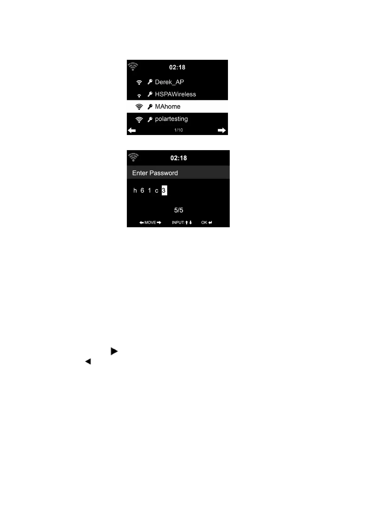 Ruotando la manopola UP/DOWN, è possibile inserire la password Wi-Fi. Se si preme