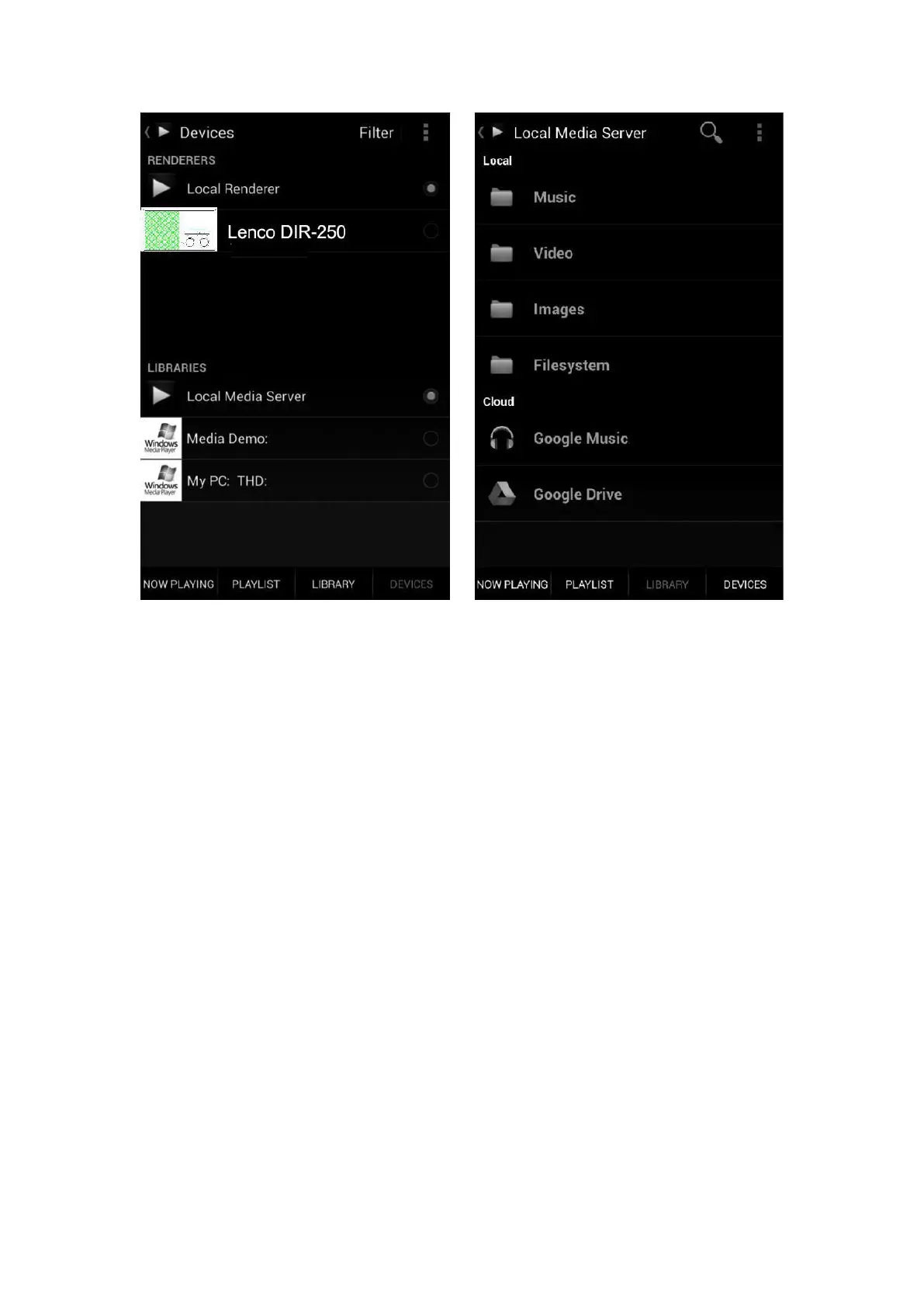 Selezionare il server e il lettore e poi i brani musicali