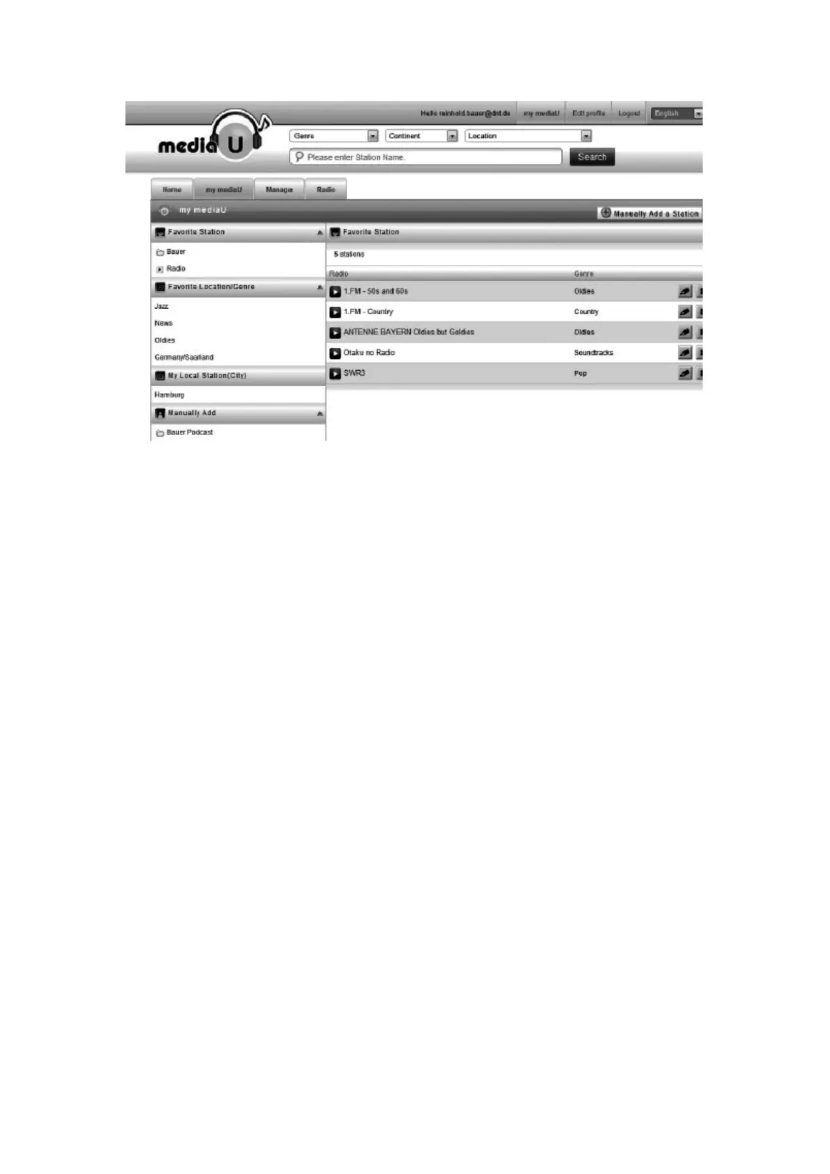 3. Alla voce My mediaU (Il Mio mediaU) >Manually Add (Aggiunta Manuale), è