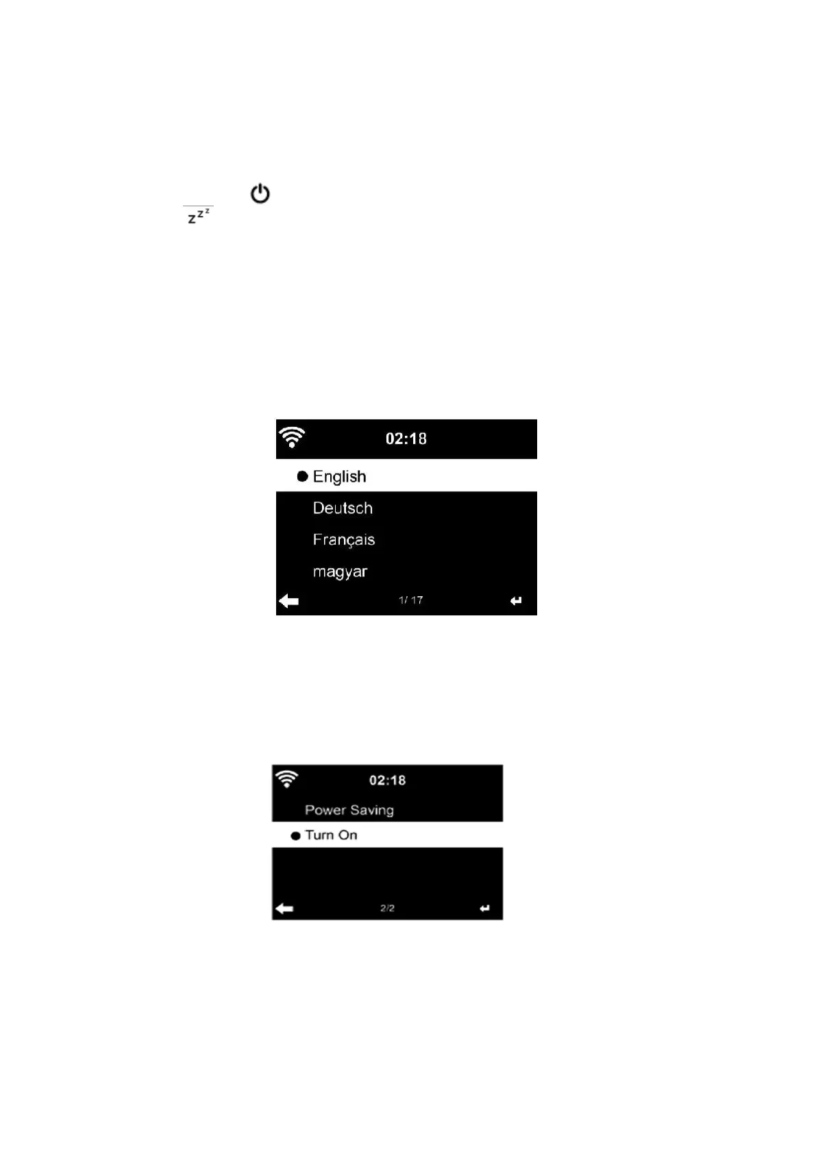 Select ”Power Saving” to set the backlight brightness for the standby mode and select “Turn