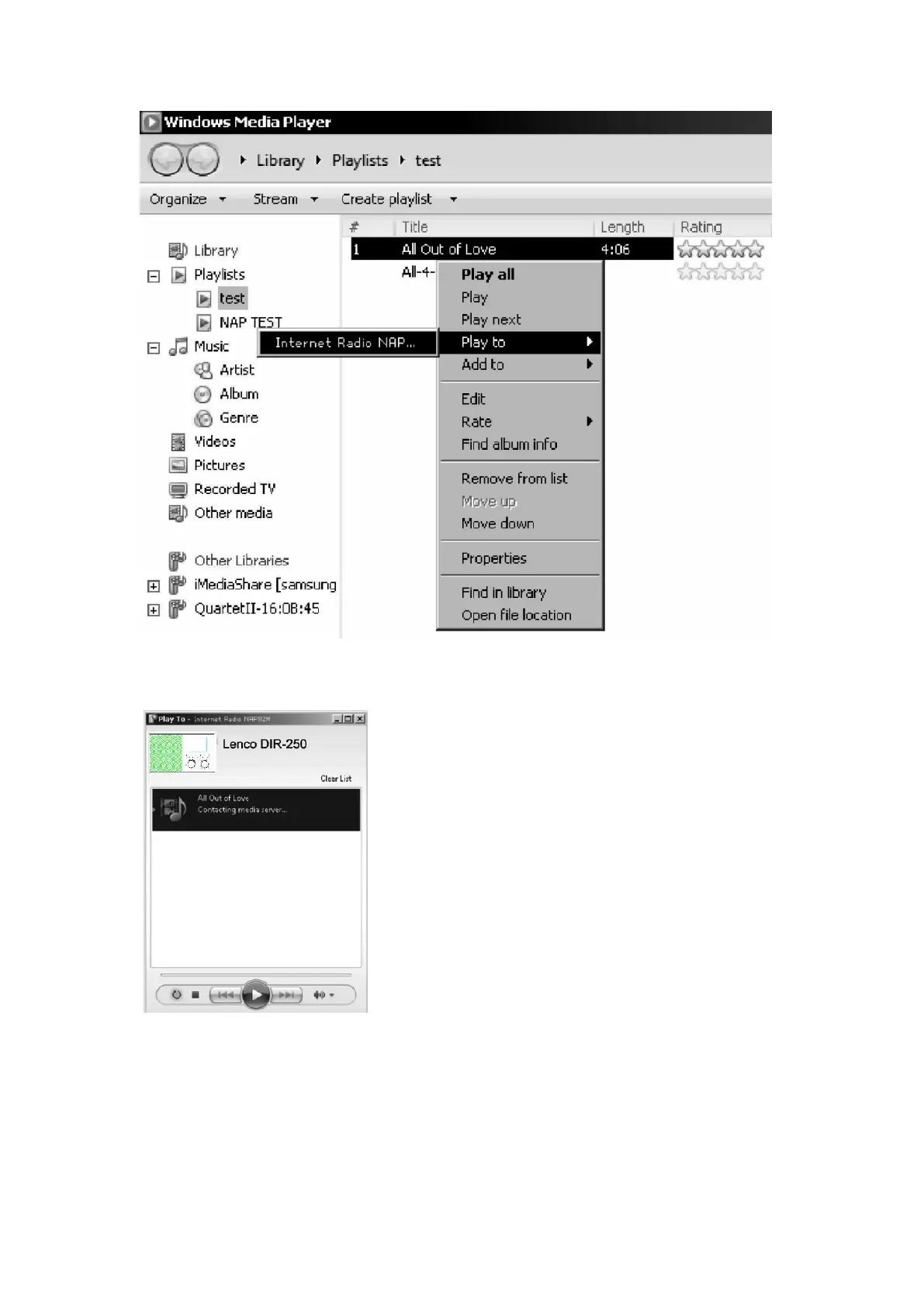 Er zal een venster verschijnen om het afspelen van de muziek op de Lenco DIR-250 te