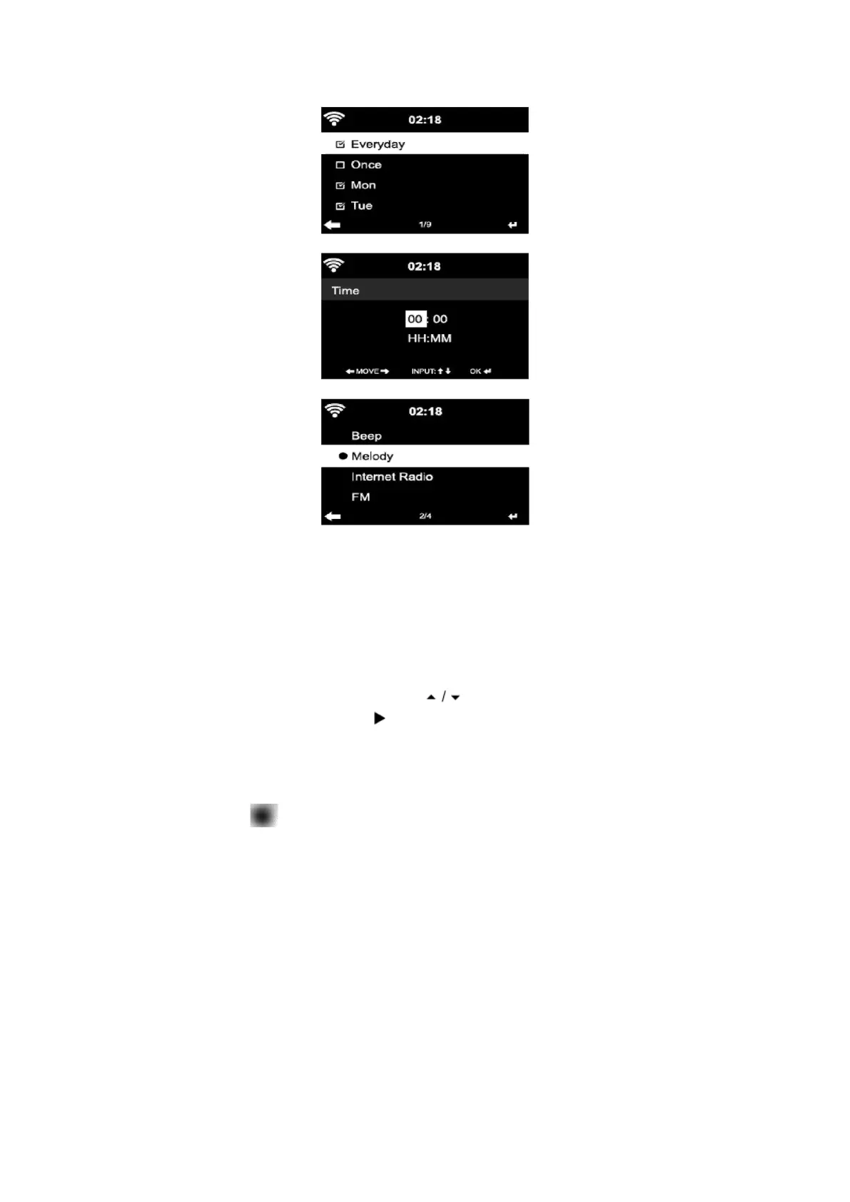 Opmerking: als u het (alarm) geluid kiest Internetradio/FM/DAB. U moet een eerder