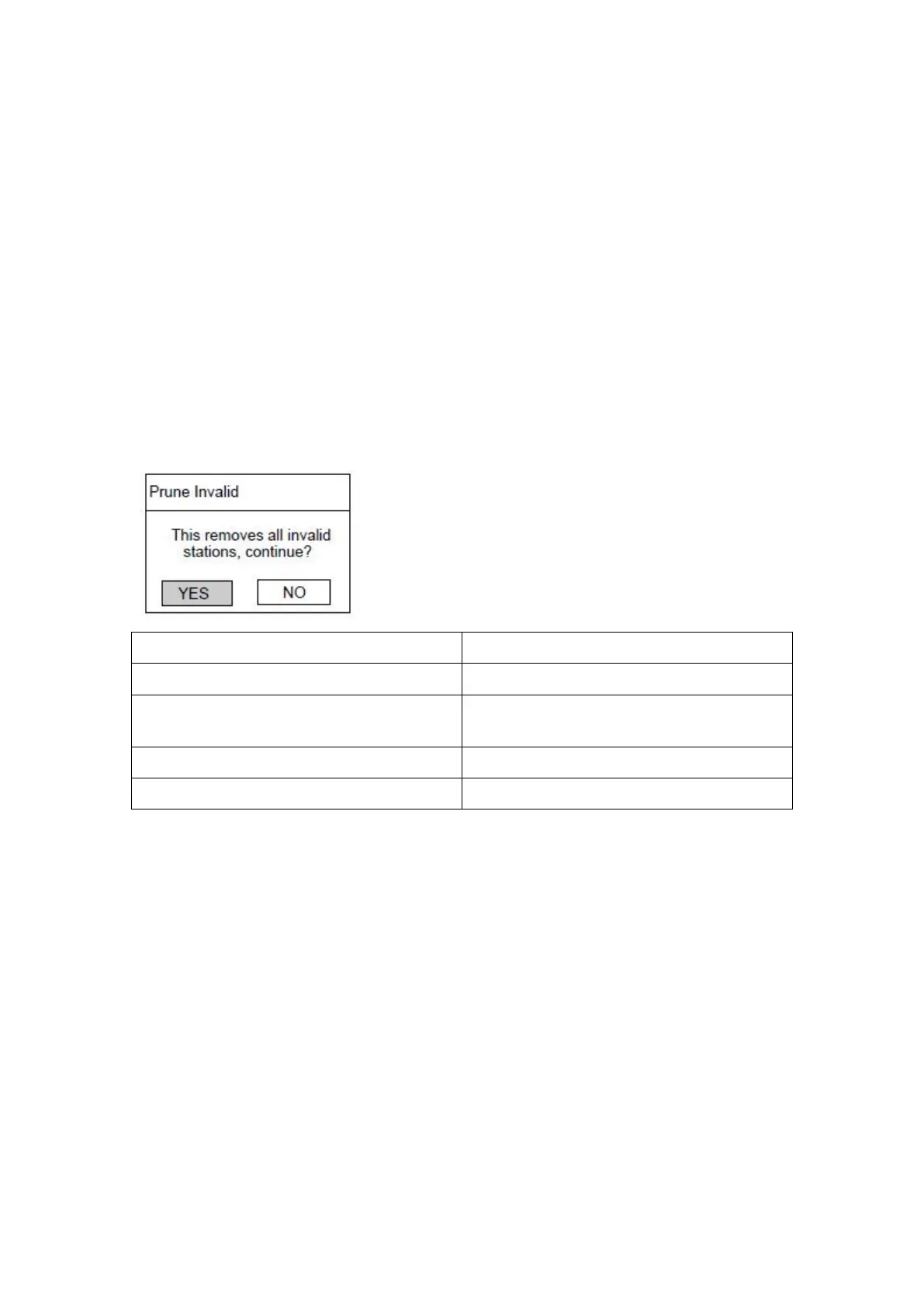 Wanneer u Prune Invalid (Opruimen) selecteert, dan zullen alle ongeldige stations uit de lijst