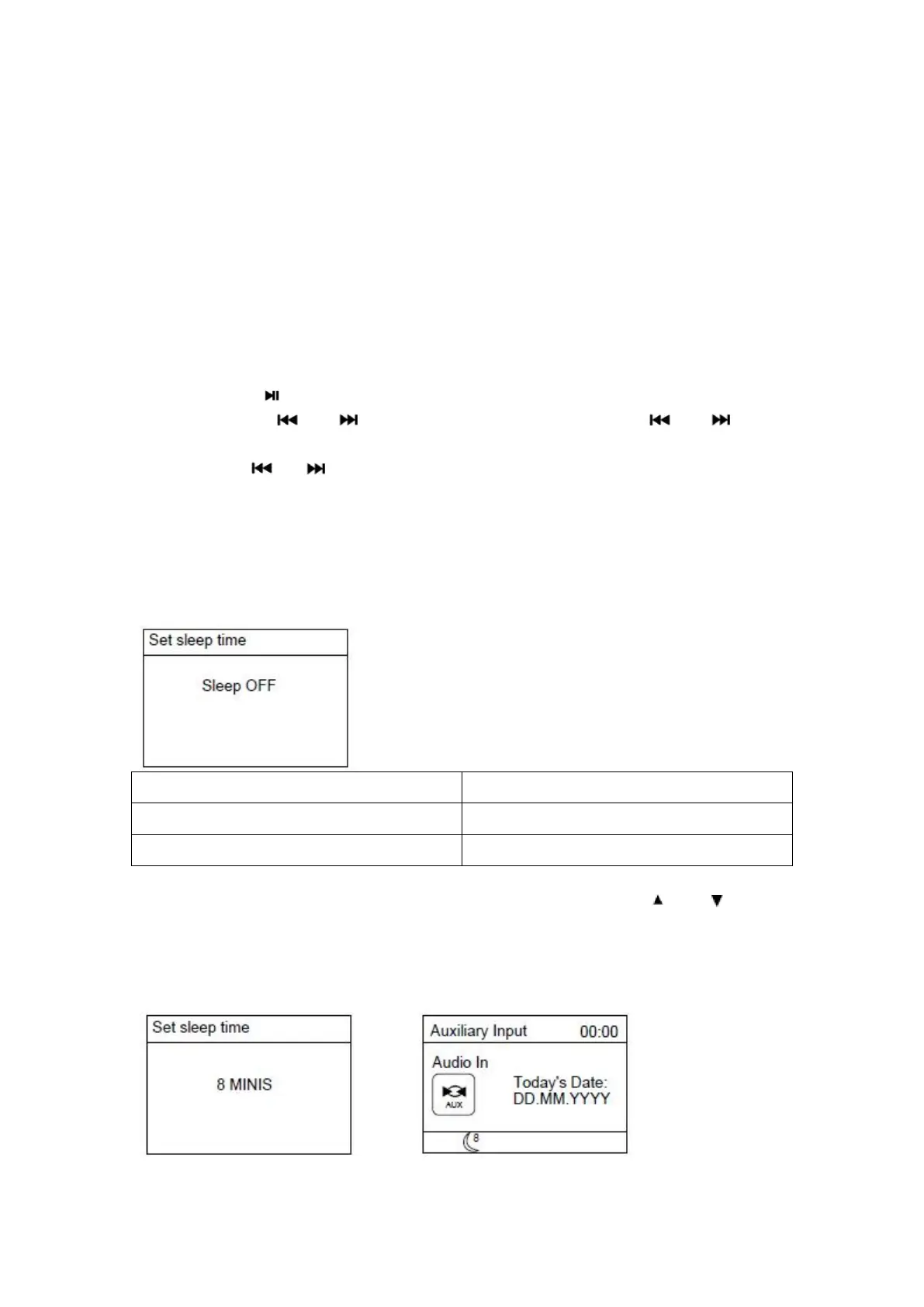Als u Sleep (Slaap) selecteert in het hoofdmenu, dan zal de volgende pagina verschijnen.