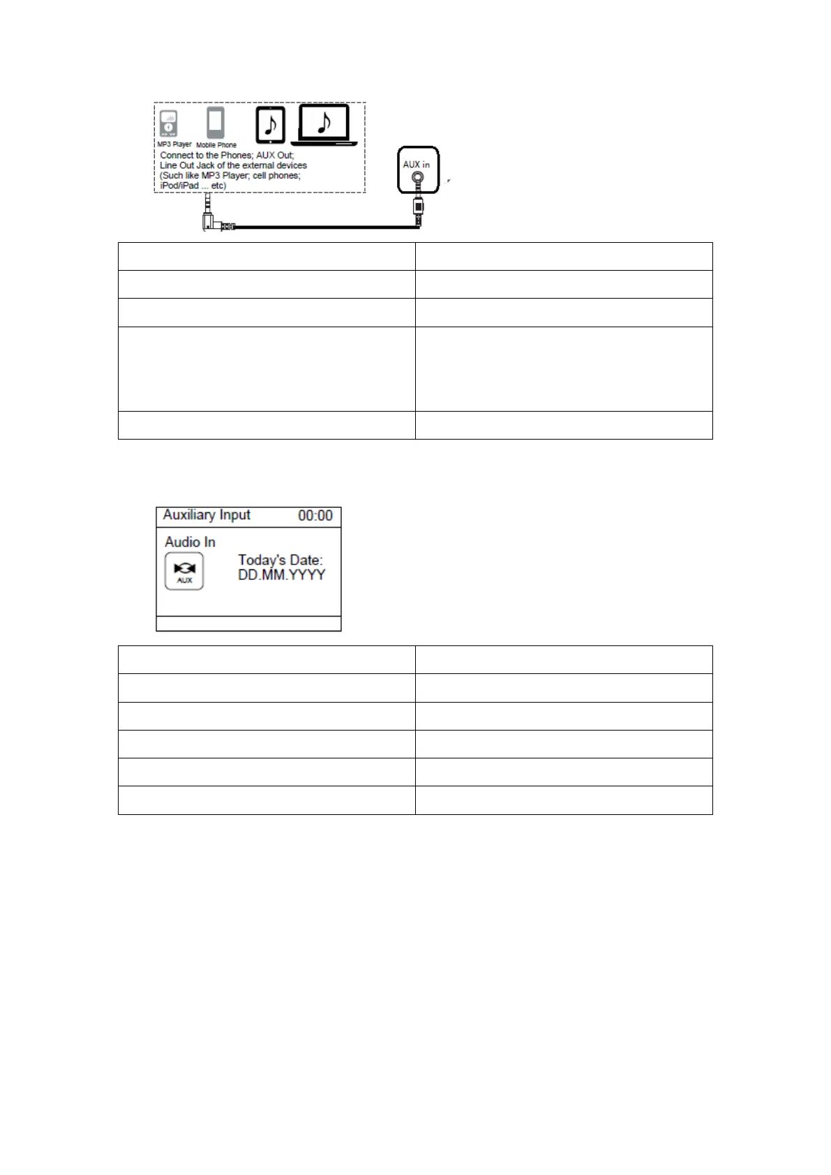 (Hauptmenü) > Aux in (AUX-Eingang) aus, um in den AUX-Eingangsmodus zu wechseln.