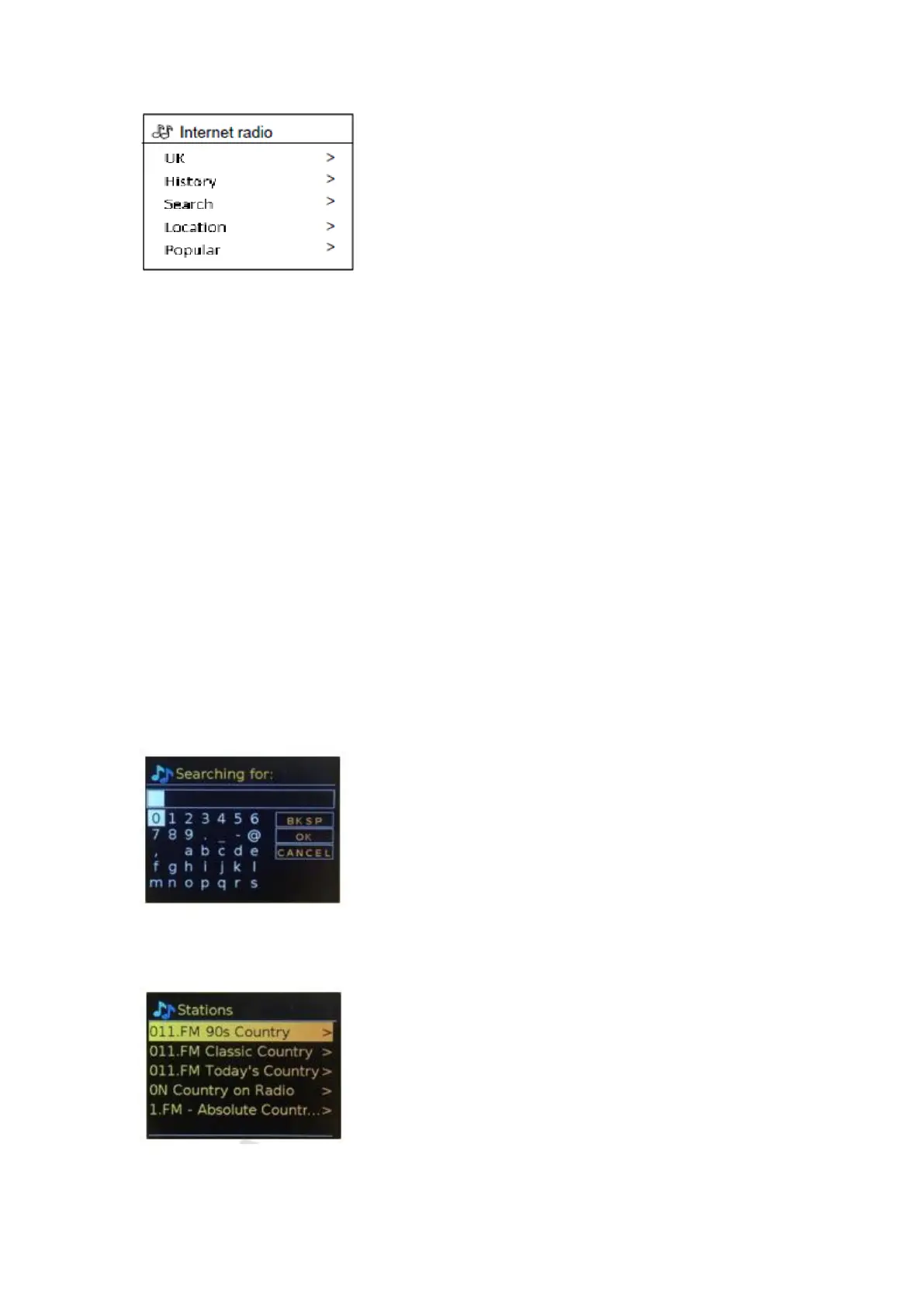 When Internet radio mode restarts, the last-listened station is selected. To select another