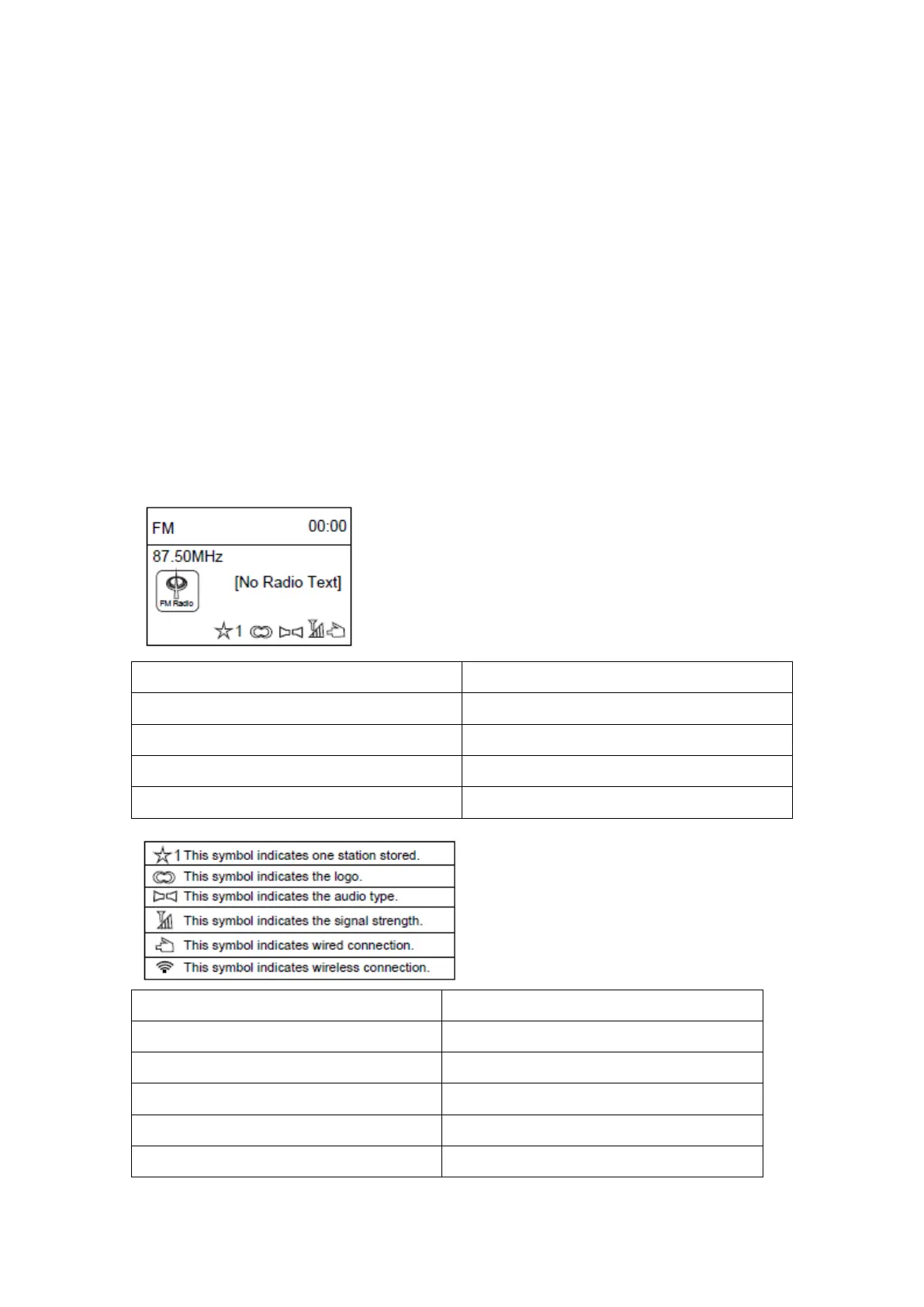 Dans le menu principal, si FM est sélectionné, la page suivante apparaît.