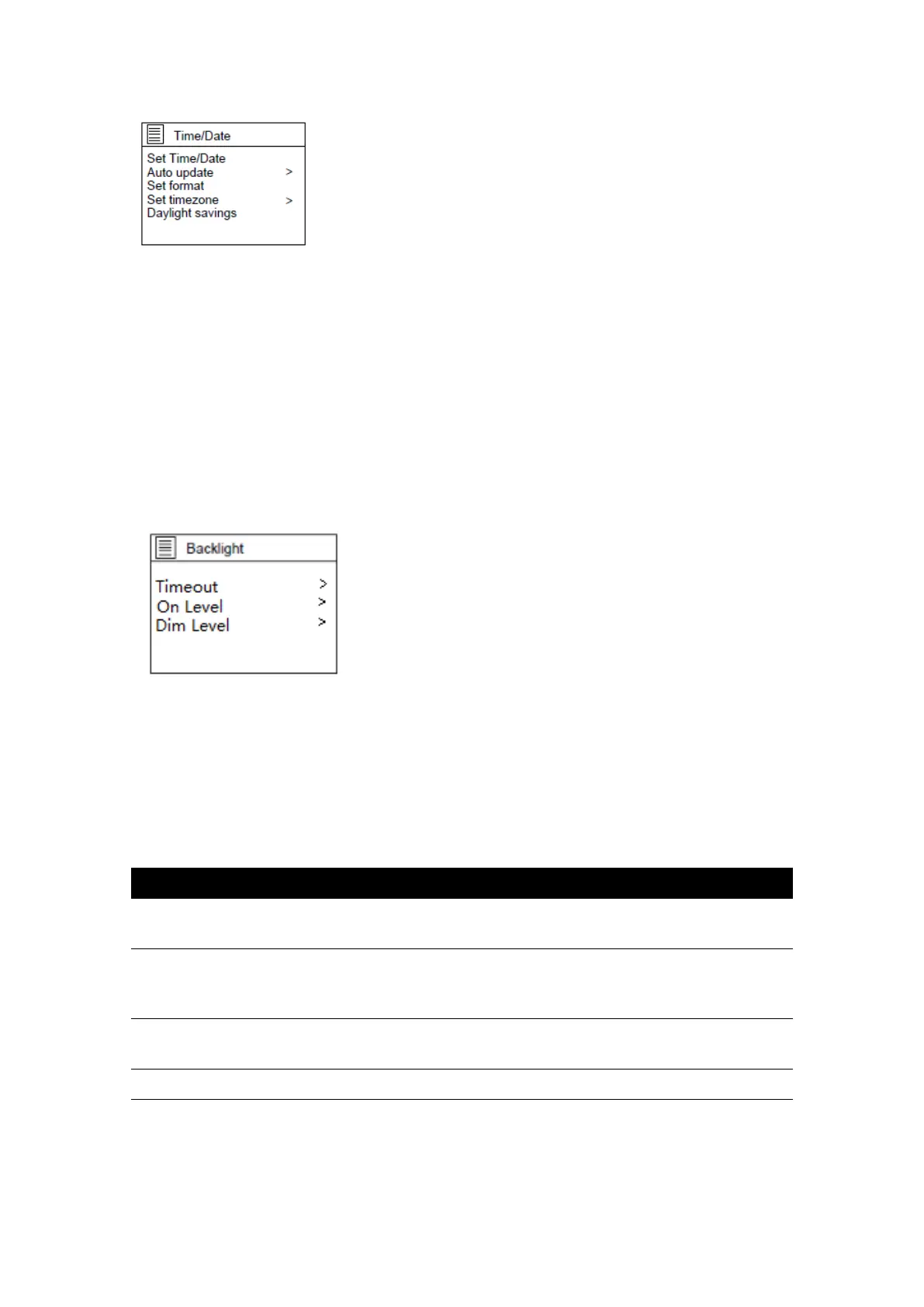 7. In System settings menu, if Backlight is selected, the screen will appear as attached