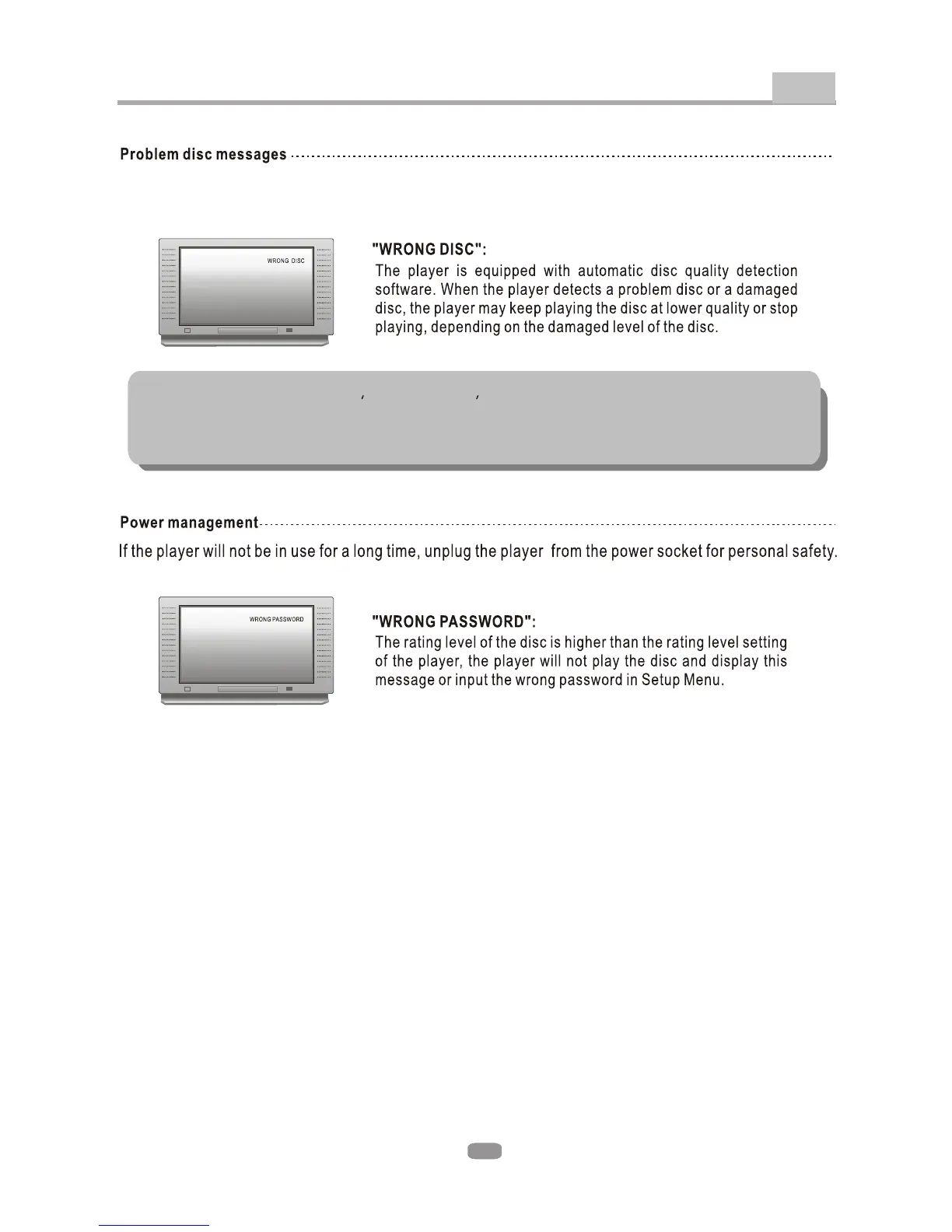 The following message will be displayed on the screen when there is a problem with the loaded disc: