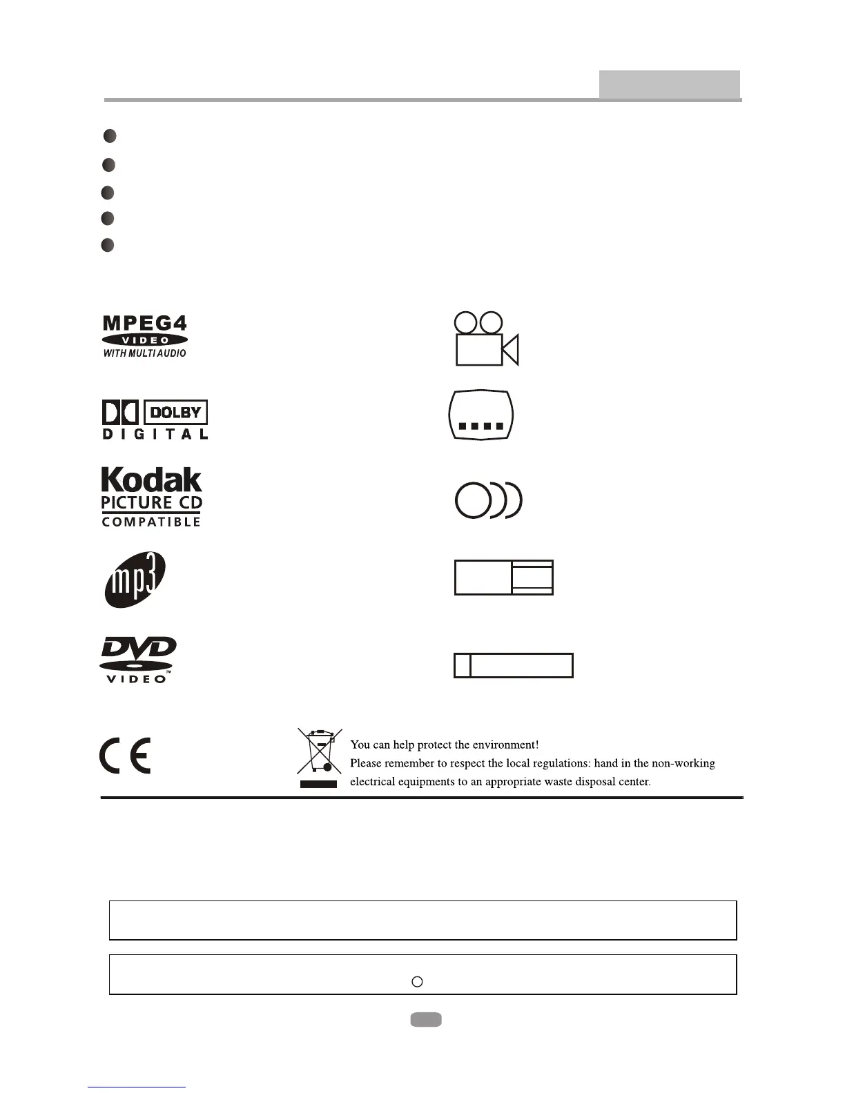 Full compatibility with MPEG4, DVD, CD, MP3, KODAK Picture CD, CD-R and CD-RW ( f i n a l i z e d )