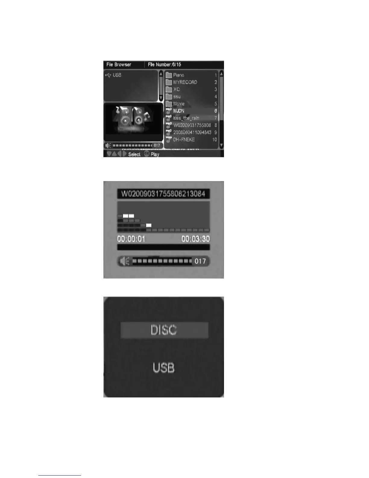 Using Direction keys to choose file you want to play then press OK or Play/Pause button to start