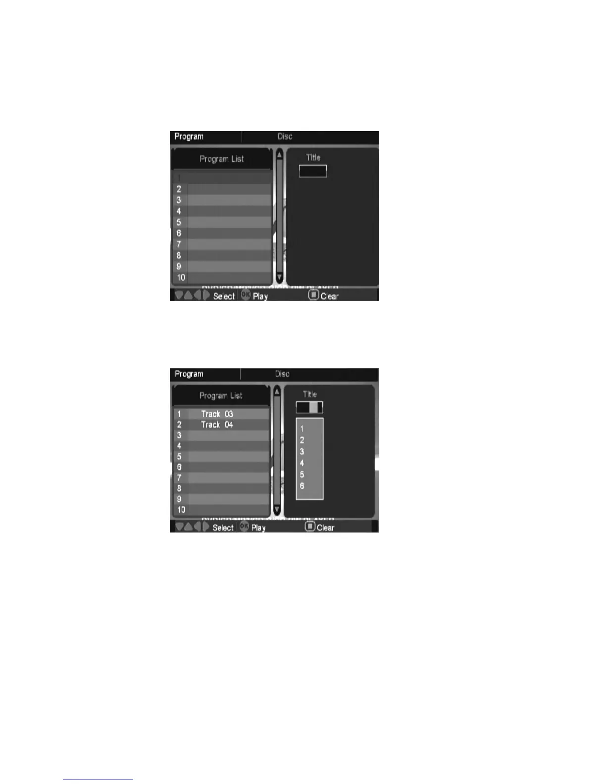 Press PROG button (hold for more than 1.5s) during CDDA/VCD/DVD playback, system will