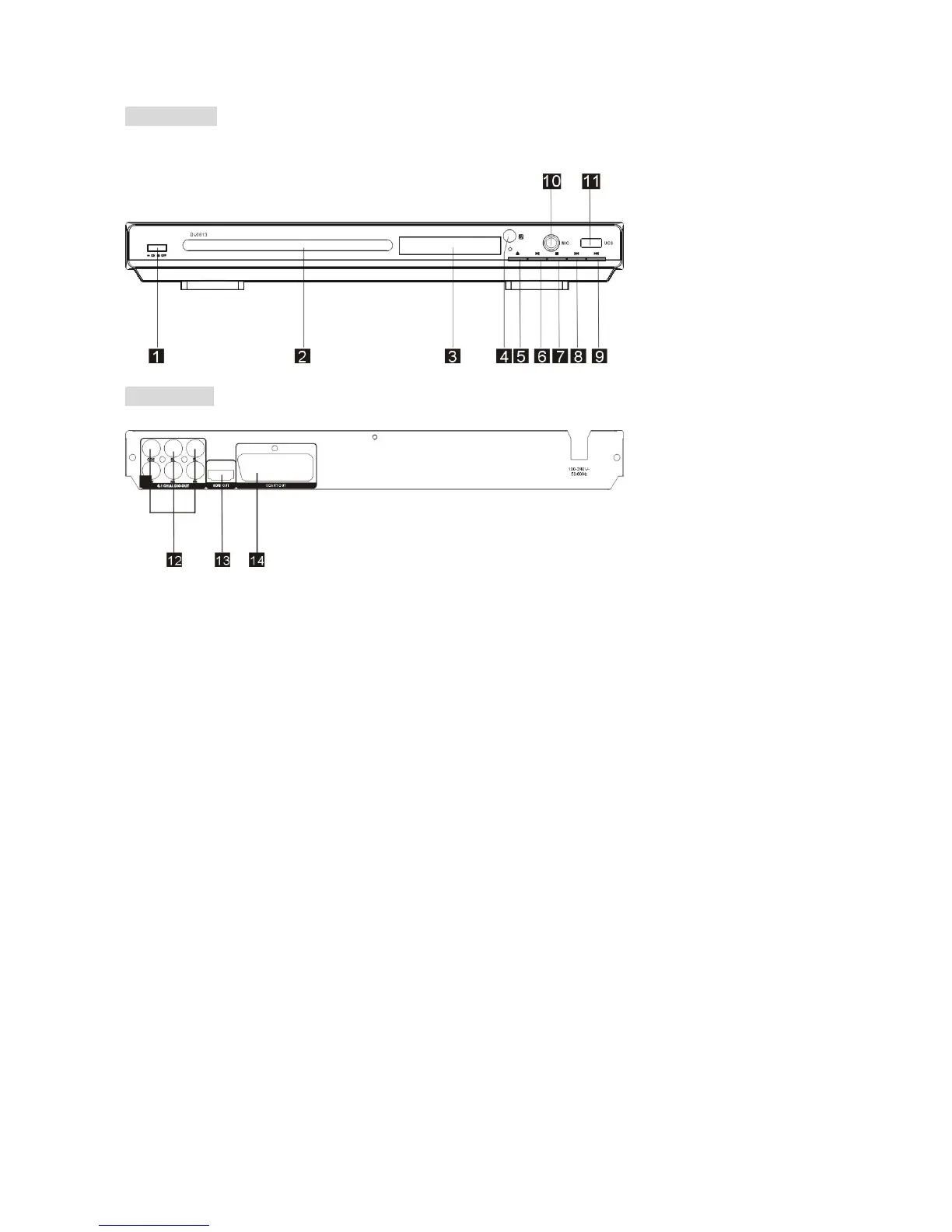 LENCO dvd player - Device Layout; Front and Rear Panel Components