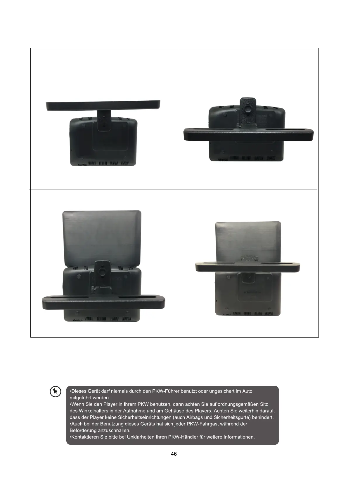 Es gibt mehrere Möglichkeiten, den tragbaren DVD-Player an der Halterung zu befesgen