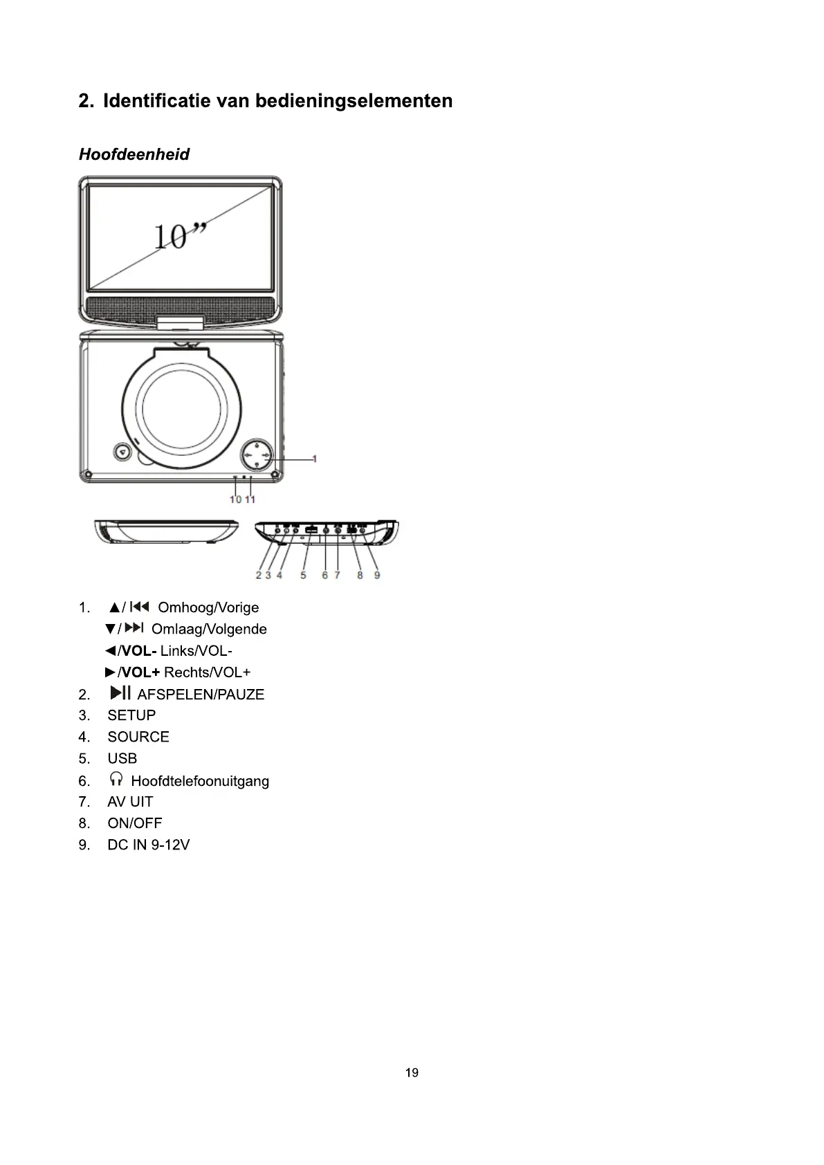 11. Indicatielampje aan/uit