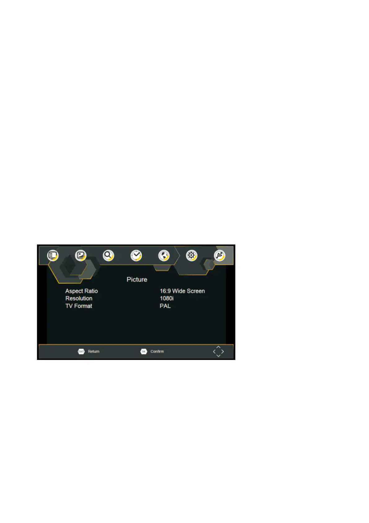 You must set the display format to either 4:3 PanScan, 4:3 Letter Box, 4:3 Full, 16:9 Wide Screen, 16:9