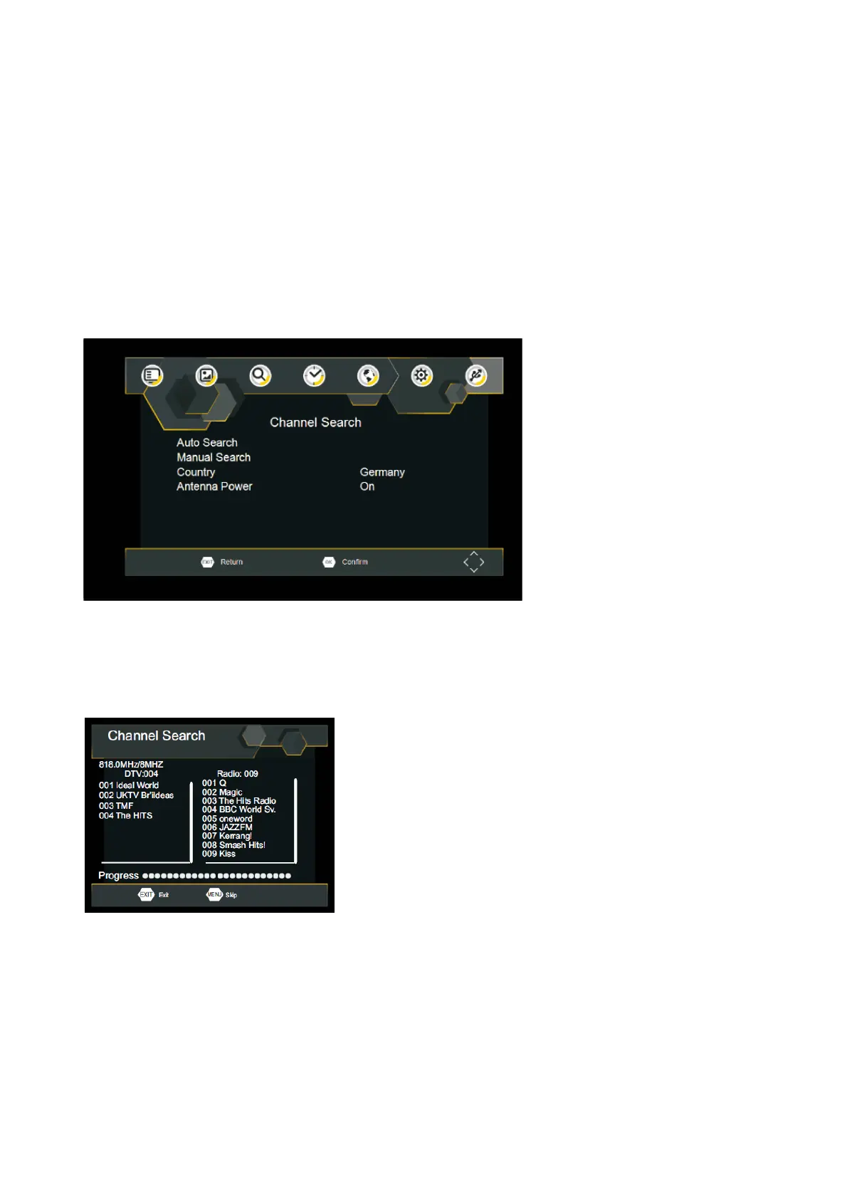 1. Select [Auto Search] and press OK or RIGHT to start channel search.