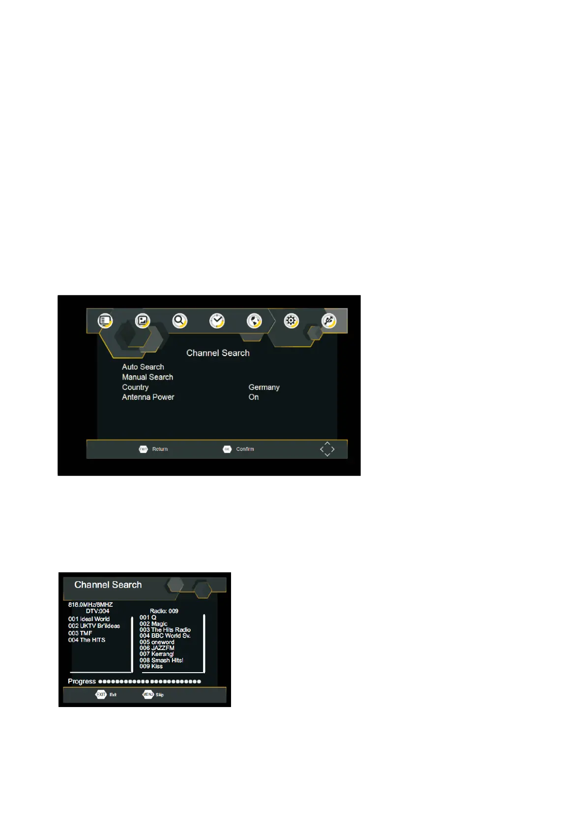 2. Om het zoeken naar kanalen te annuleren, drukt u op EXIT.