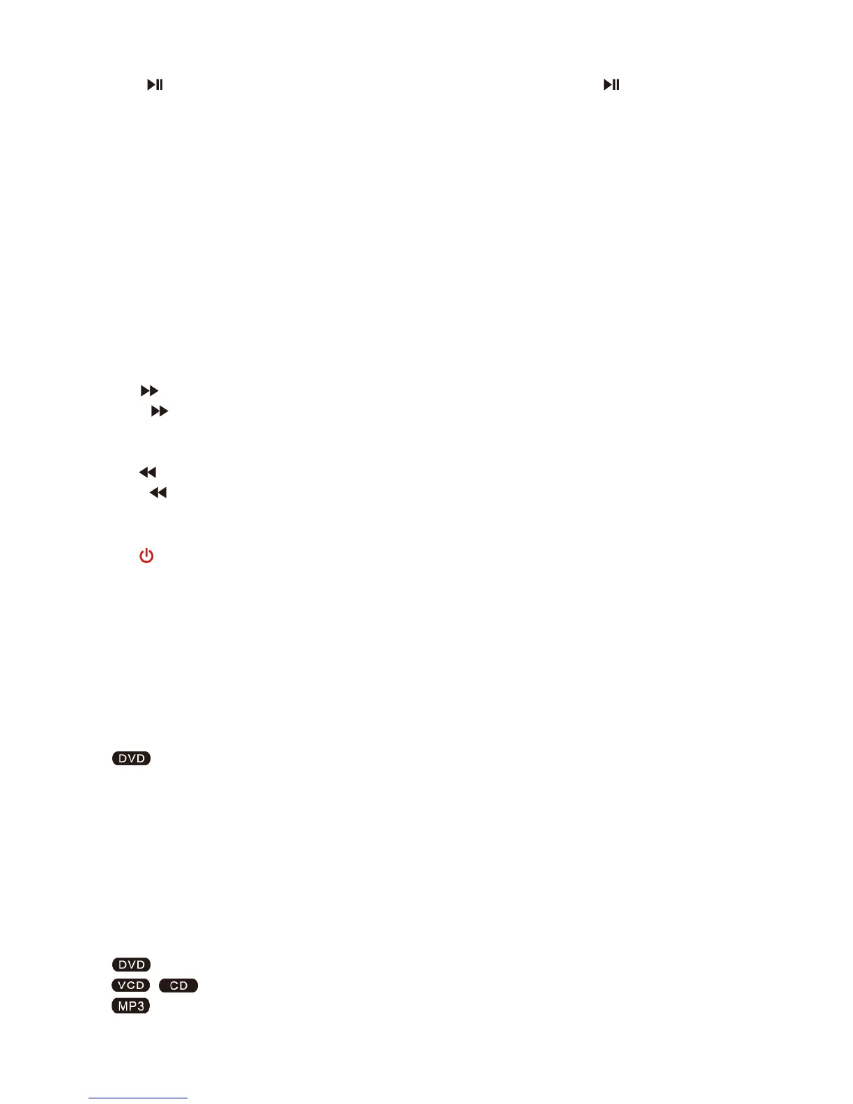 Step the motion in DVD mode. Switch between TV and Radio source in DVB mode.