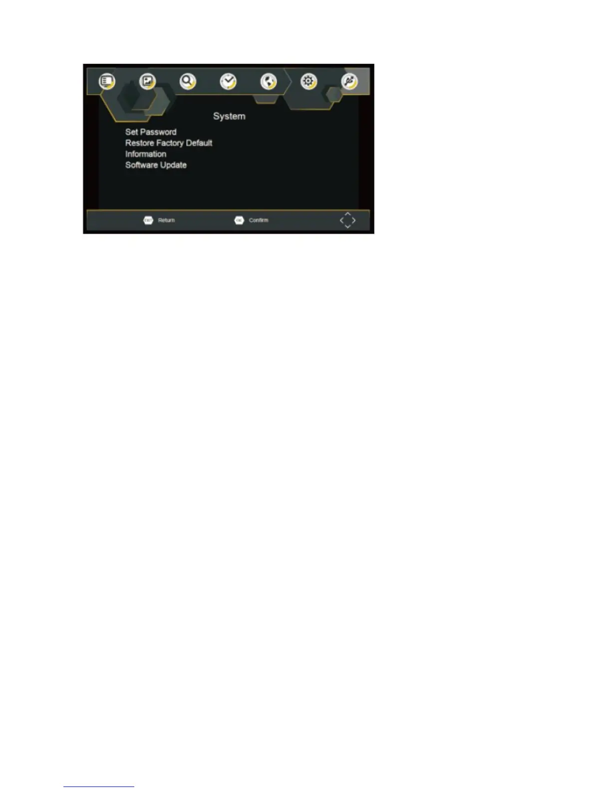 [Restore Factory Default (Rétablir réglages d'usine)] et appuyez sur la touche OK ou DROITE pour sélectionner.