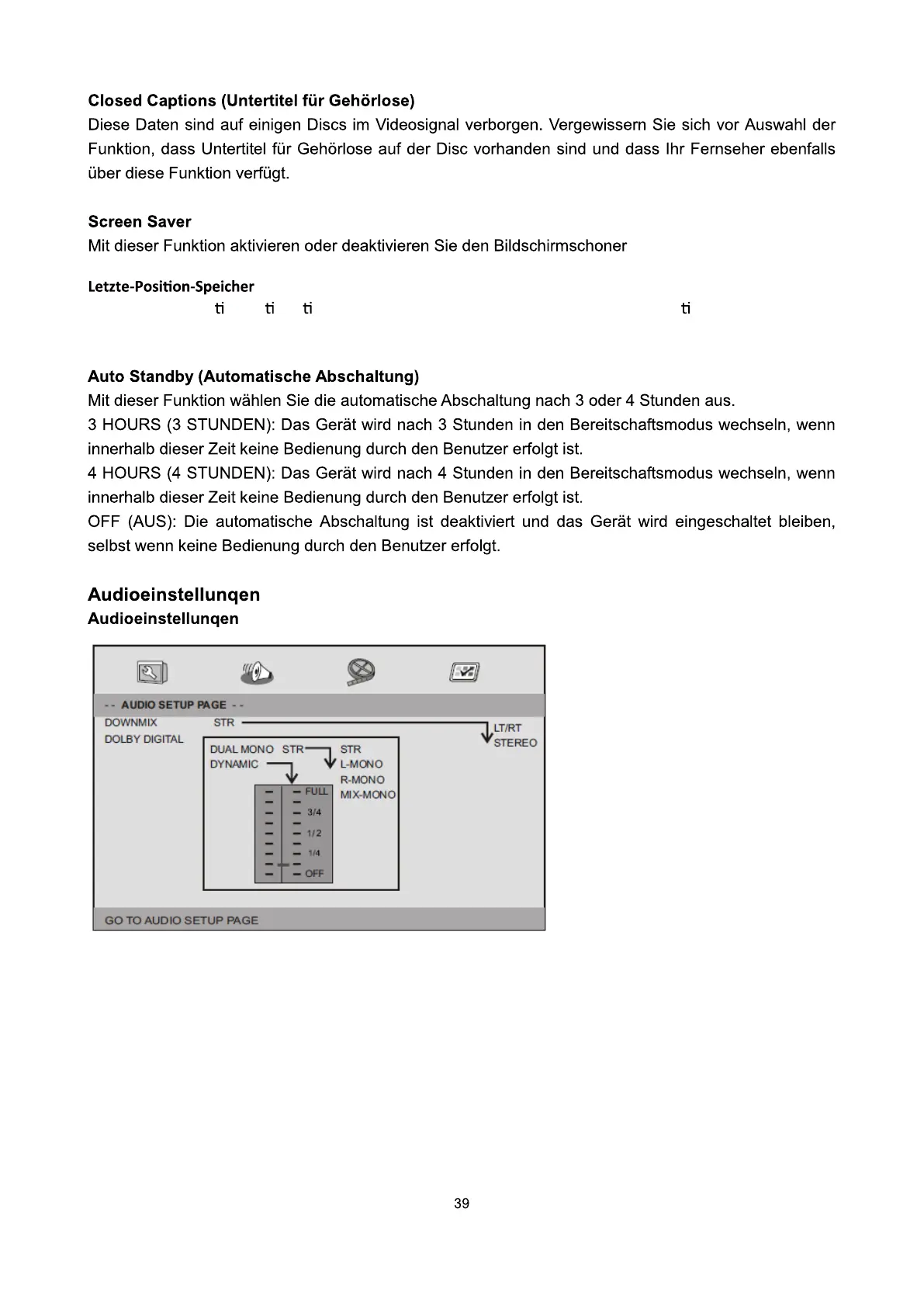 Wenn diese Funk on ak vier st, dann wird die Wiedergabe der DVD an der Posi on fortgesetzt,