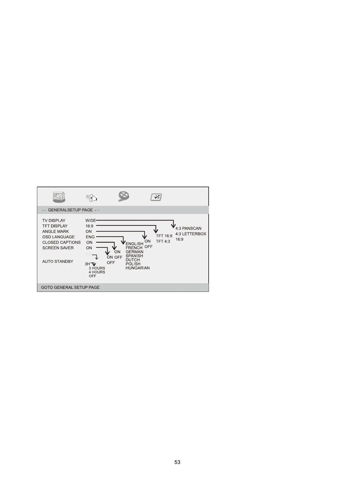 GENERAL (GÉNÉRAL) : Sélectionne la page GENERAL SETUP [CONFIGURATION GÉNÉRALE]