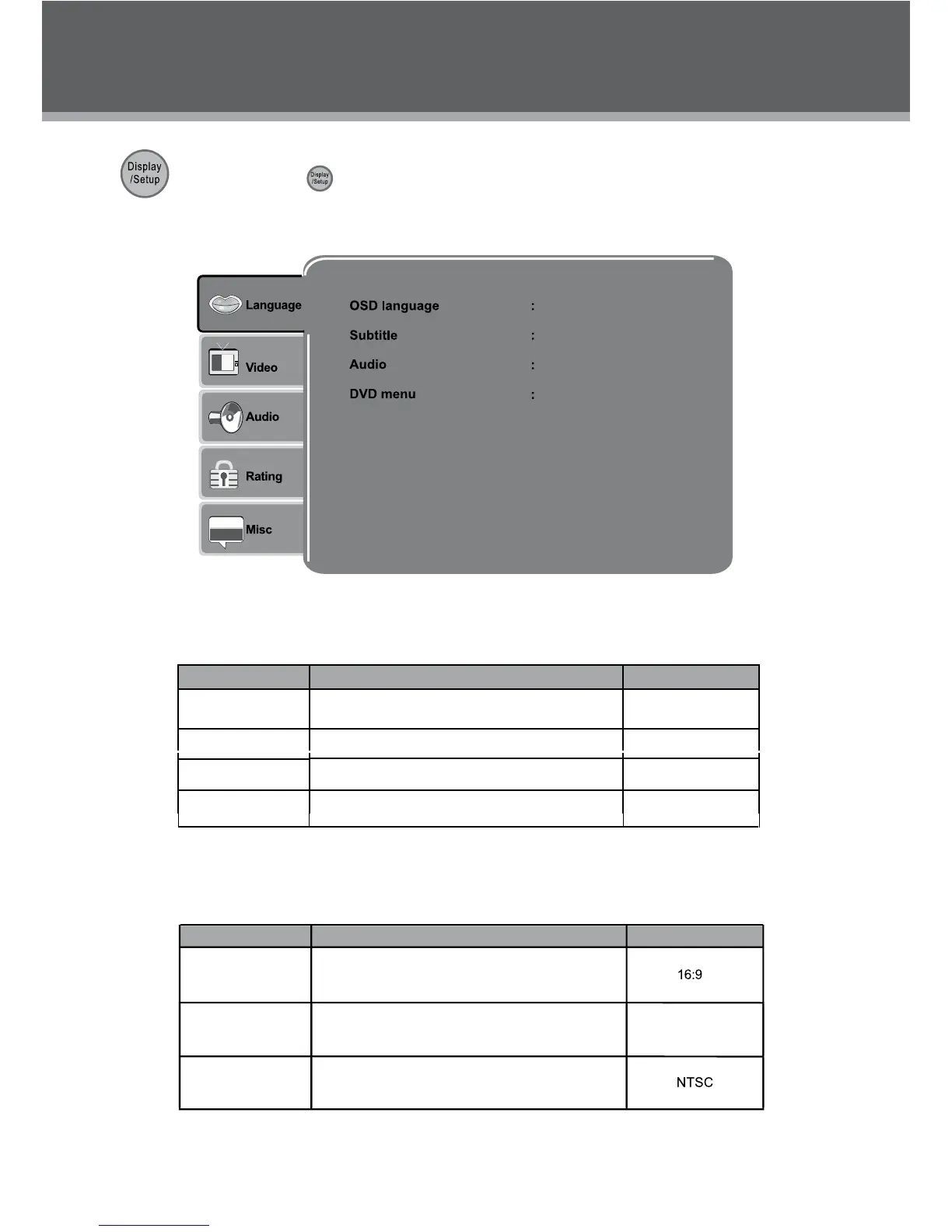 Varias funciones del reproductor pueden ser ajustadas desde el menú SETUP