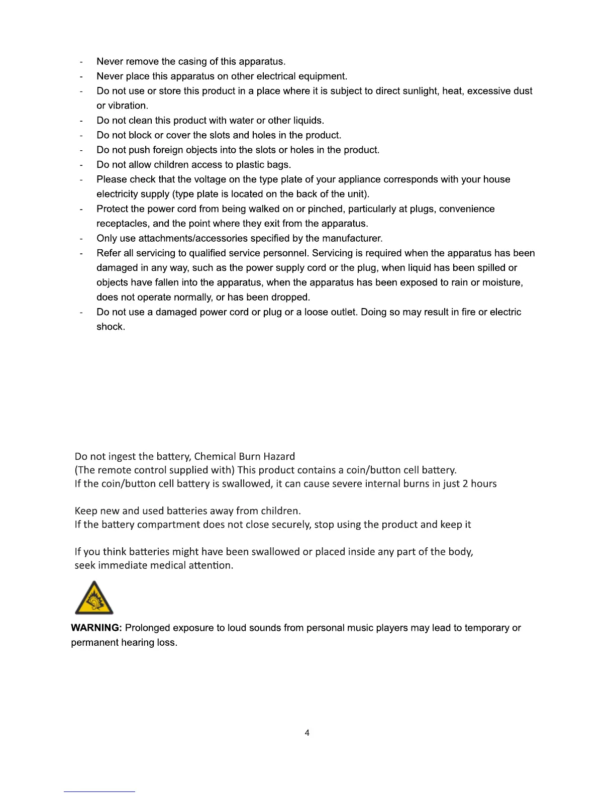 To prevent possible hearing damage, do not listen at high volume levels for long periods.