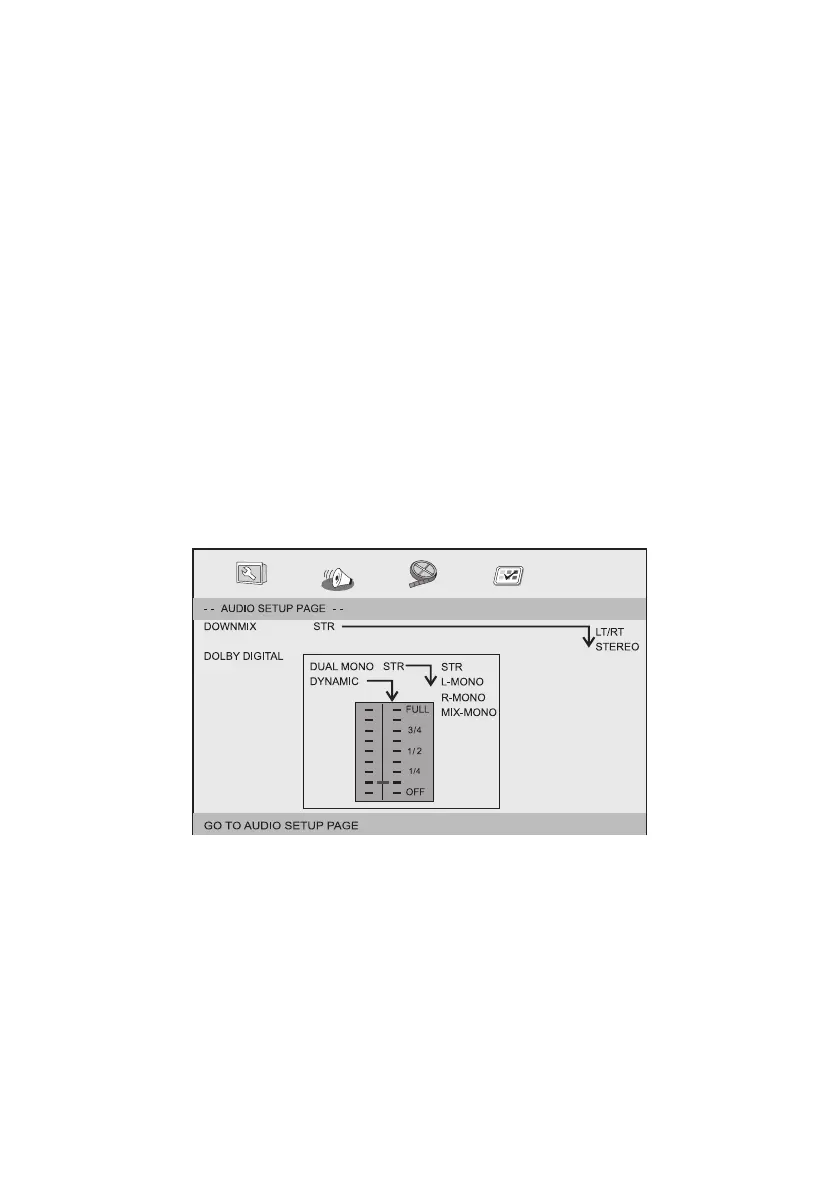 De opties waar u uit kunt kiezen bij Dolby Digital Setup zijn: 'Dual Mono ' en 'Dynamic’